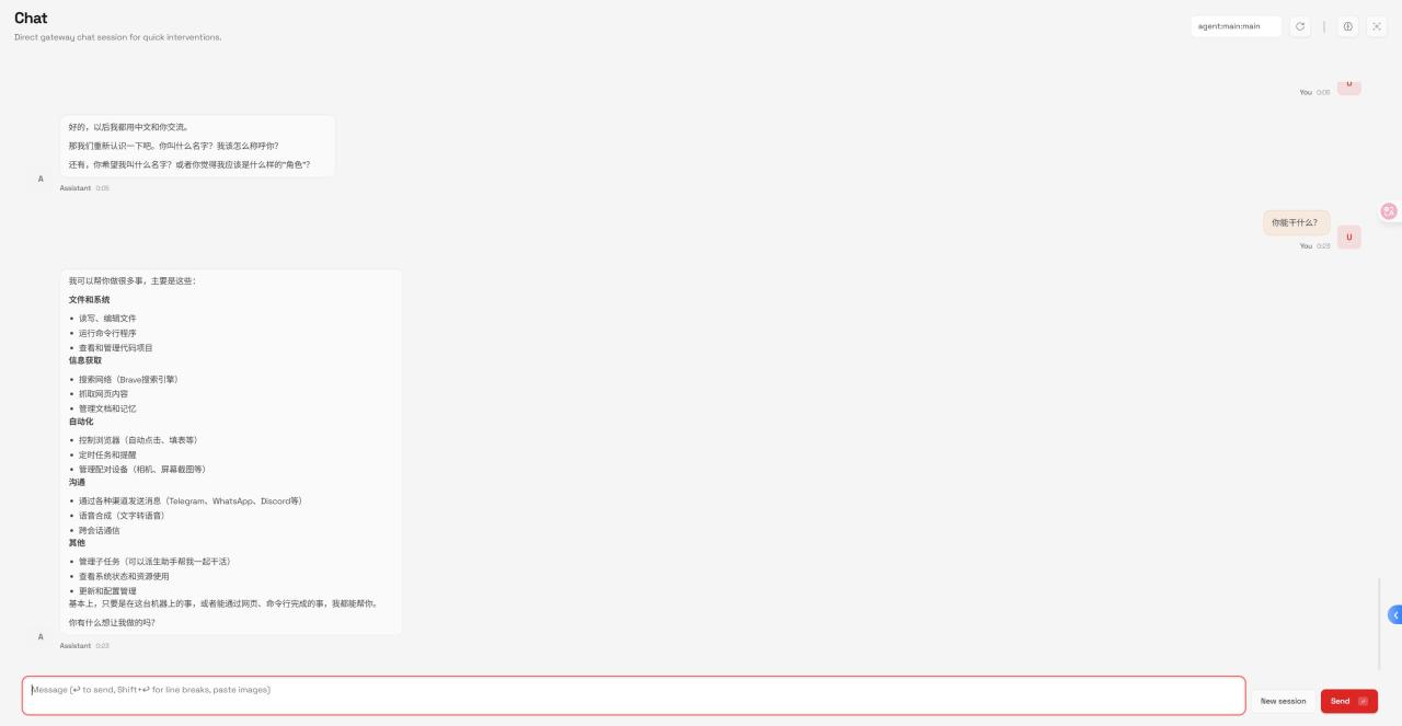 在瀏覽器輸入:http://你的NAS局域網IP:18789。 你會看到一個極具極客感的界面。