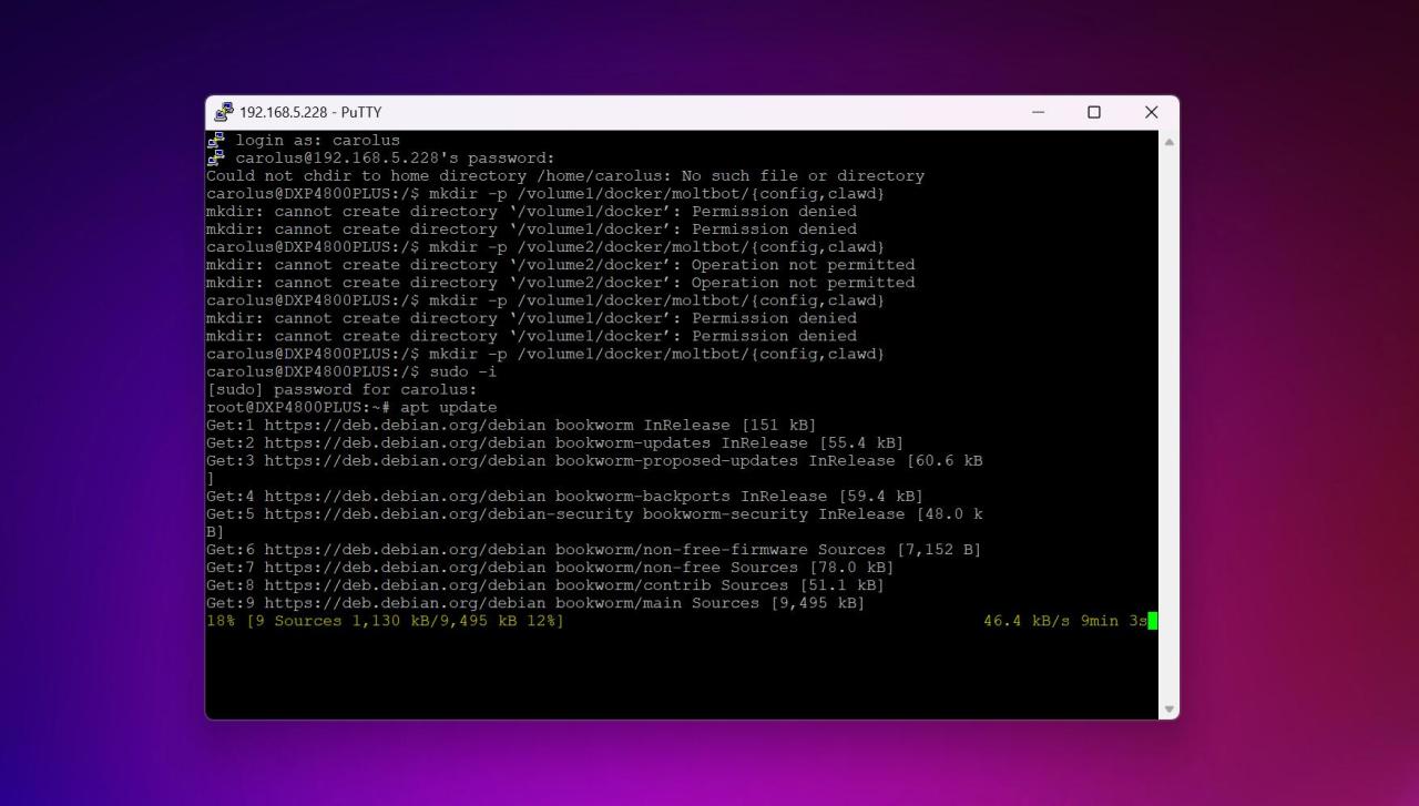 sudo mkdir -p config clawd