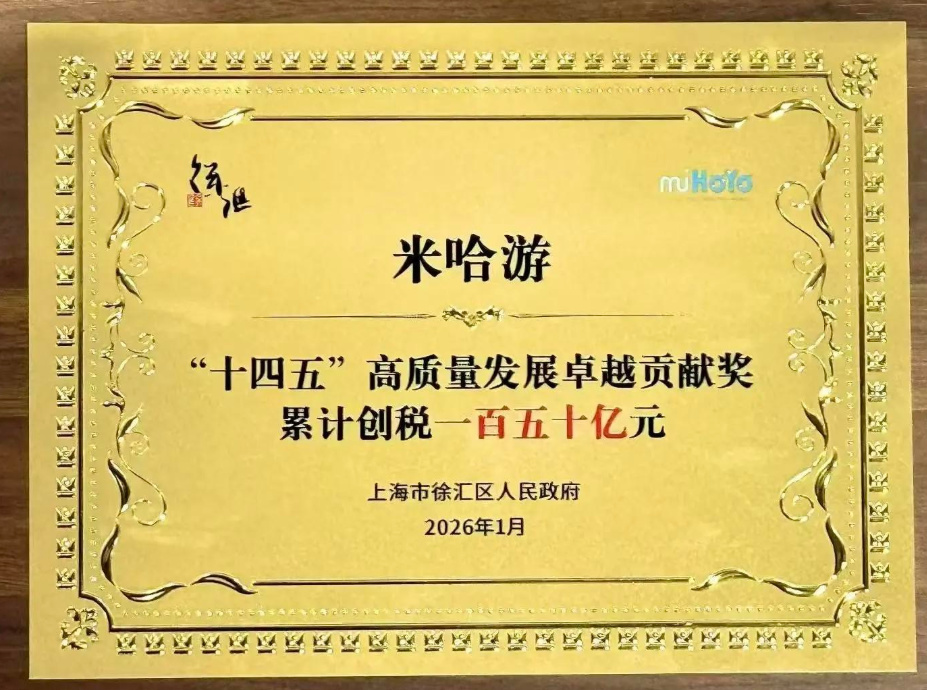 1月26日,在徐彙區招商引資表彰大會上,騰訊與米哈遊榮獲“十四五”高質量發展卓越功勳獎。作爲區域經濟發展的重要貢獻者,米哈遊在“十四五”期間(2021-2025)累計創稅達到150億元,這一數字引發業界廣泛關注。