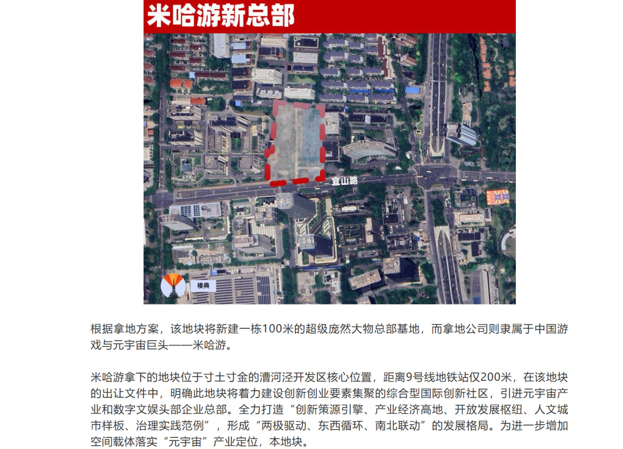 2023年10月,米哈遊以10億元在徐匯購地建設新總部,出讓合同曾約定:交地後需實現達產稅收總額不低於每年33.33億元。當時這一條款曾引發行業熱議,有知乎用戶據此推算米哈遊未來三年總流水或需達到1400億–2200億元區間。