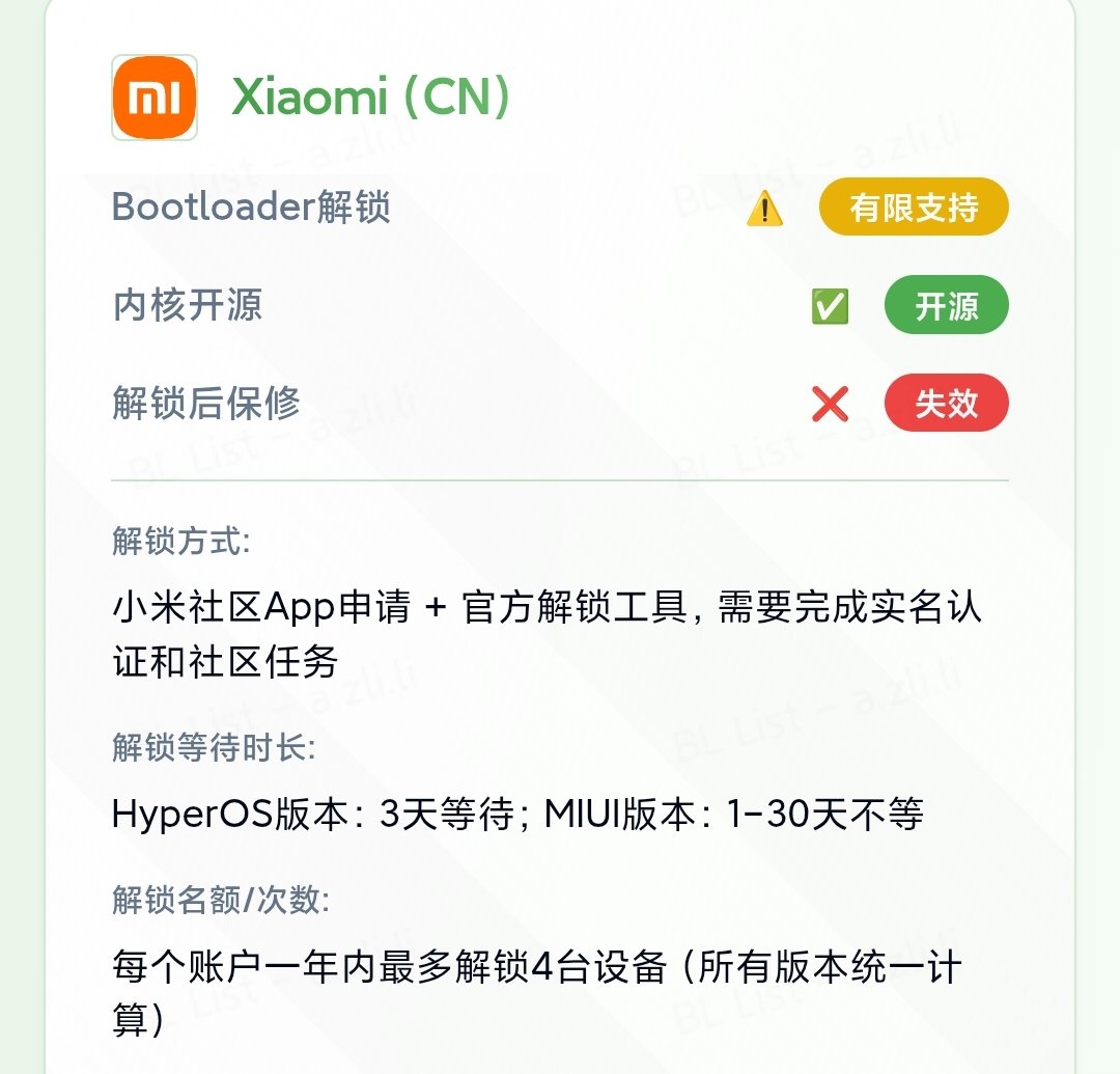 BL List是一个安卓手机刷机工具查询平台(一个社区负责维护的),能方便快捷查到各手机厂商的Bootloader解锁、内核开源相关规则,还会清晰标注对应的保修政策,