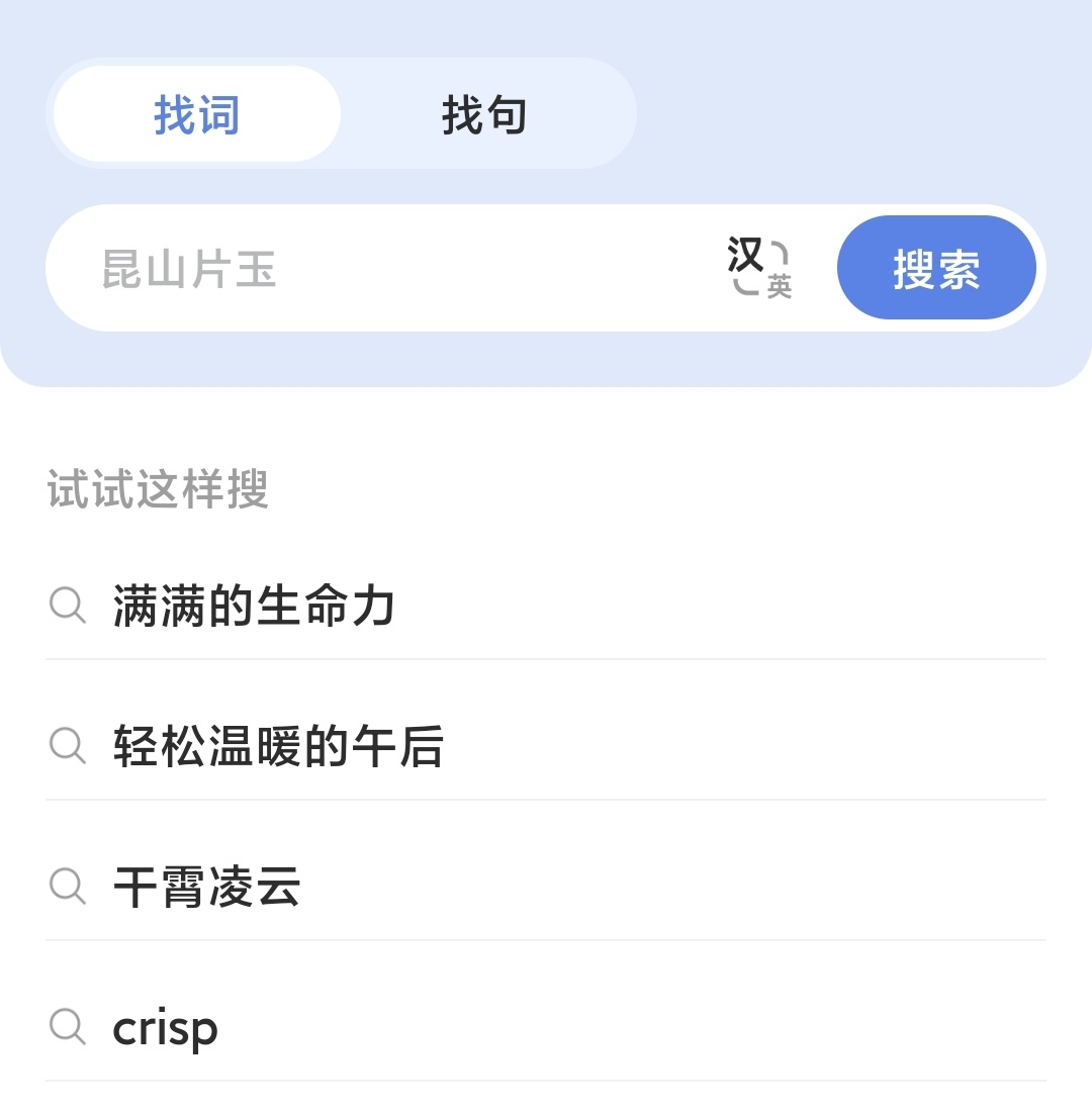 这个网站写文的时候很实用想把大白话换成有诗意的表达、古风味的句子,或是找贴合的现代诗句、名言警句,用它就行。感觉不同于人工智能的那种你说啥给你找啥。