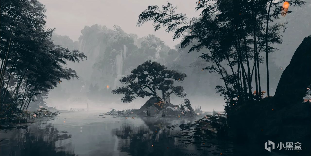 藉助陽光和丁達爾效應所呈現的光線和色彩,美術師們營造出了天境般的氛圍,使原有的水墨山水層次更上一層樓。
