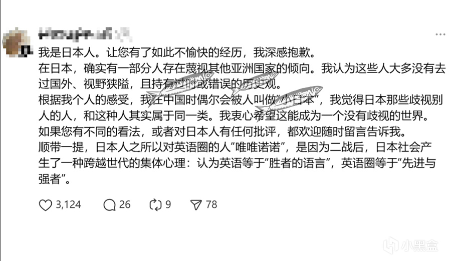 日本網友爲此,感到抱歉,她遭遇如此不愉快的經驗,並承認日本有一部分視野狹隘的人存在蔑視其他亞洲國家的傾向,