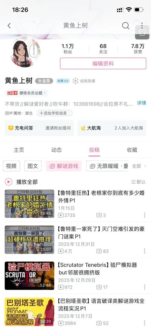 顺便安利自己的b站账号!请关注黄鱼上树,推土机型解谜/动作/平台跳跃类up主!