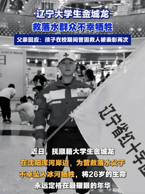 近日,遼寧撫順籍大學生金城龍在瀋陽渾河岸邊,爲營救落水父子,義無反顧踏上冰面施救,26歲的熱血生命永遠定格在這場勇敢的奔赴中。