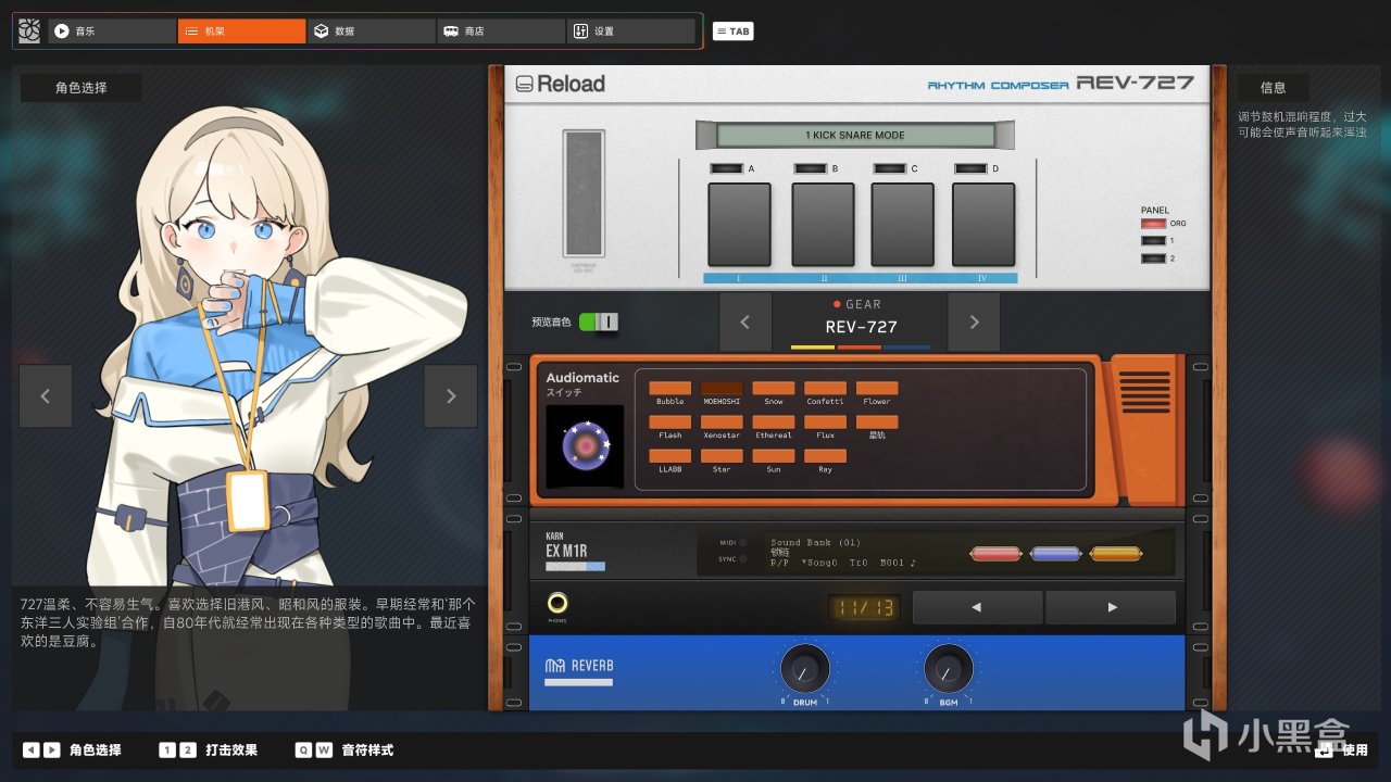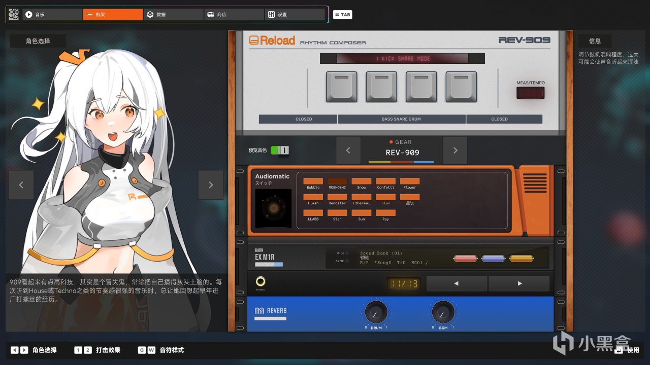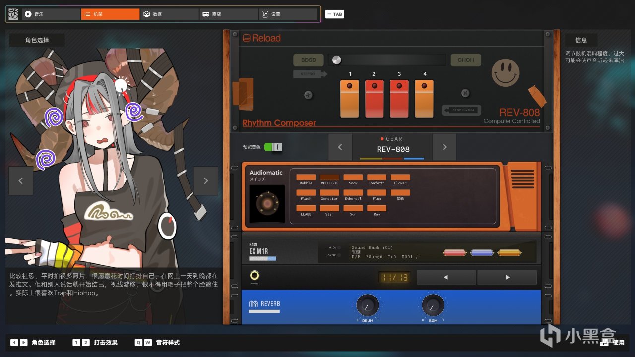 其次,非常吸引我的一点也是游戏最大的特点就是,DELFLATE将音乐历史上那些著名的鼓机还原并且拟人化了,不同的鼓机音色也会不一样(而且官方说支持接入midi控制器进行游玩)。
