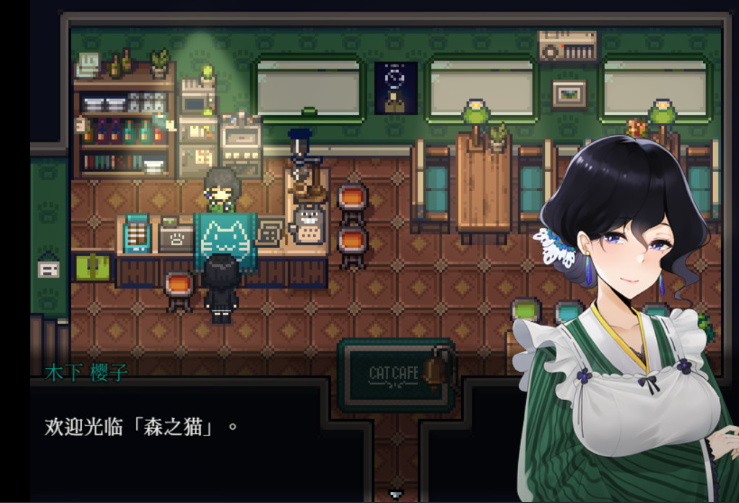 在美術方面,除去日式風格的人物立繪以外,《黑森町奇譚》採用像素畫面塑造了遊戲內所有場景,對於一箇中國製作組來說,用像素描繪異國風土人情,顯然是一個有難度的挑戰,但拾英工作室對於這套課題完成得很好,日本90年代的村社、咖啡館、列車都被塑造出了濃厚的時代元素,不知情的玩家估計很難想象到這居然是一款純正的國產遊戲,他們從中體現出來的優秀美術功底,絕對值得國內玩家爲之驕傲。