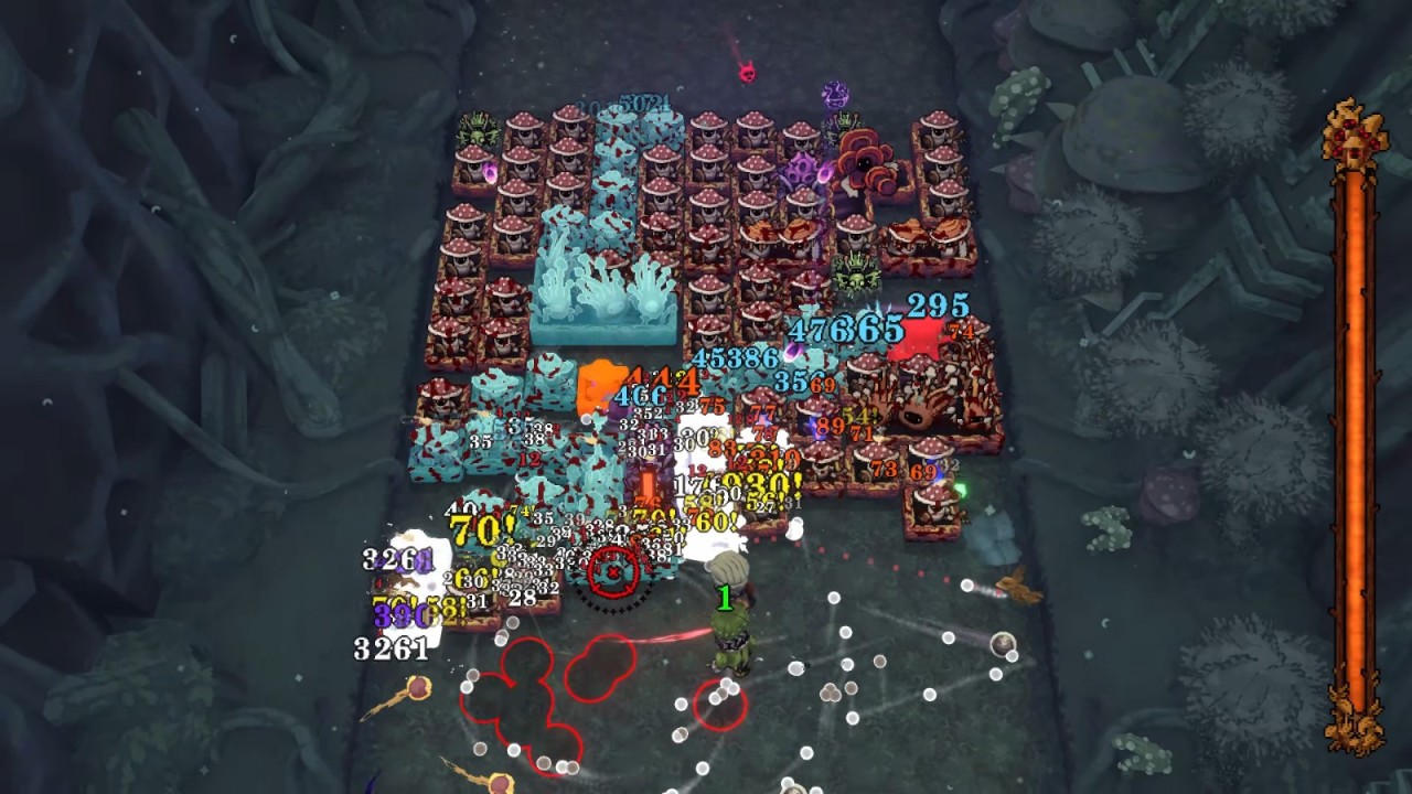《BALL x PIT》是街机游戏打砖块的变体,玩家在游戏中并非一根横杆,而是对抗深渊邪恶的宝藏猎人,一颗一颗的弹珠则成为猎人的子弹。你需要时时注意敌人弹幕、乔射击角度、并且升级战球。