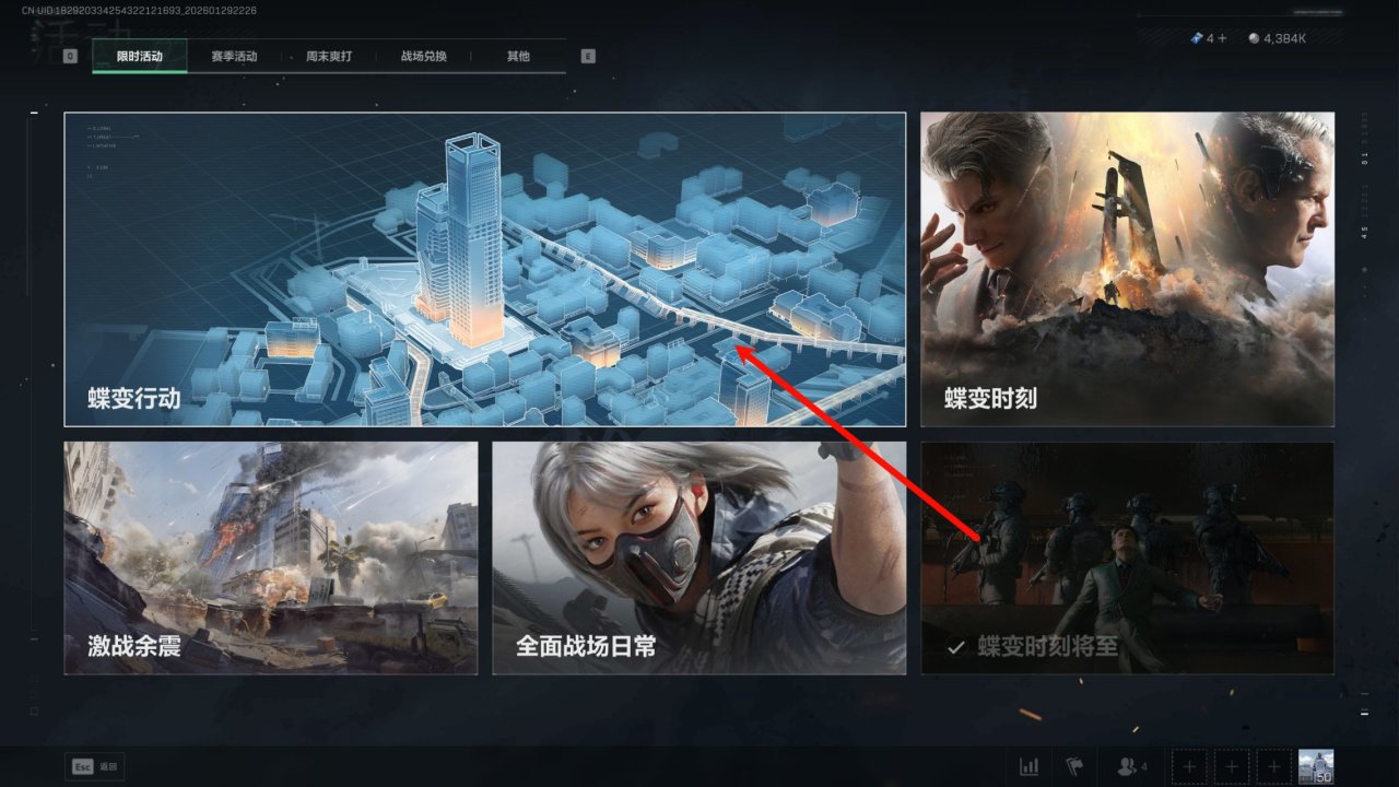 首先打开“全面战场”模式,点击活动里的这个“蝶变行动”