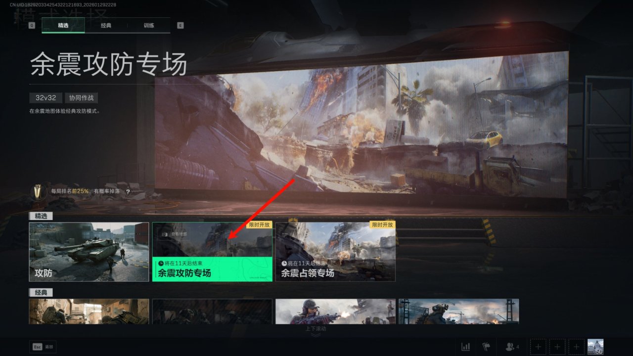 ②:游玩一局余震地图