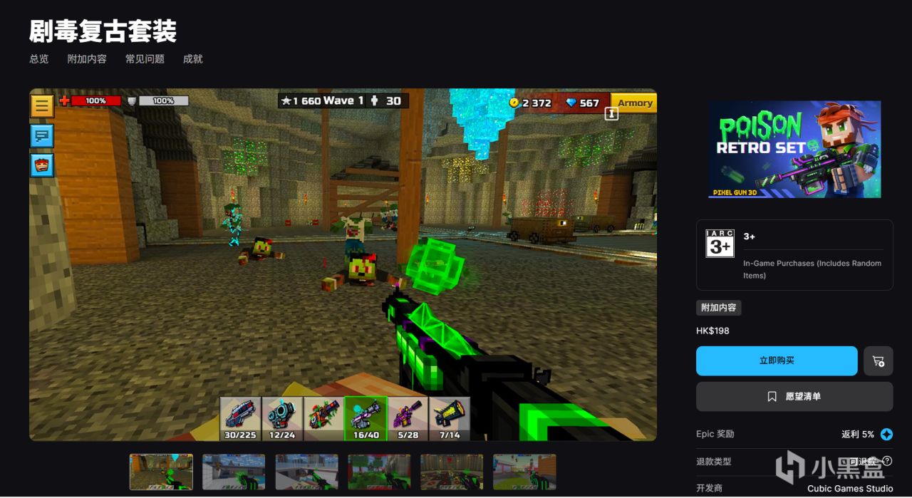 游戏:《Pixel Gun 3D-剧毒复古套装DLC》,游戏本体免费