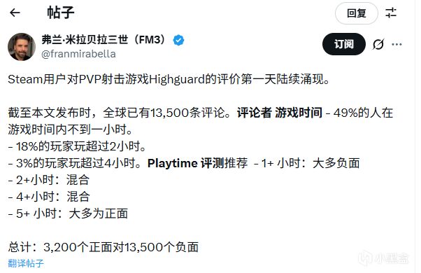 游戏上线后评价遭遇困境。Steam上约2.5万条评价中,好评率仅35%,获“多半差评”标签。特别引人关注的是,约40%的评价(约1万条)来自游玩不足1小时的玩家,其中85%(超9000条)为负面,这些短时负面评价占总负面评价的过半。