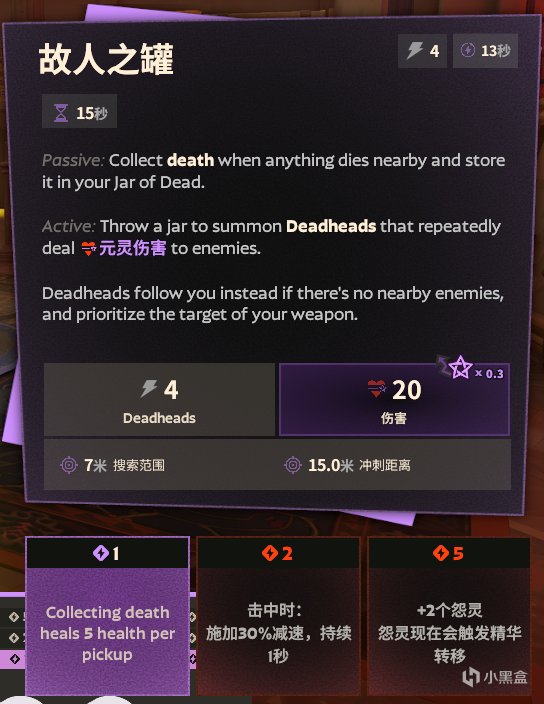 被动:当附近有任何生物死亡时,收集死亡气息并将其存储在你的“故人之罐”中。