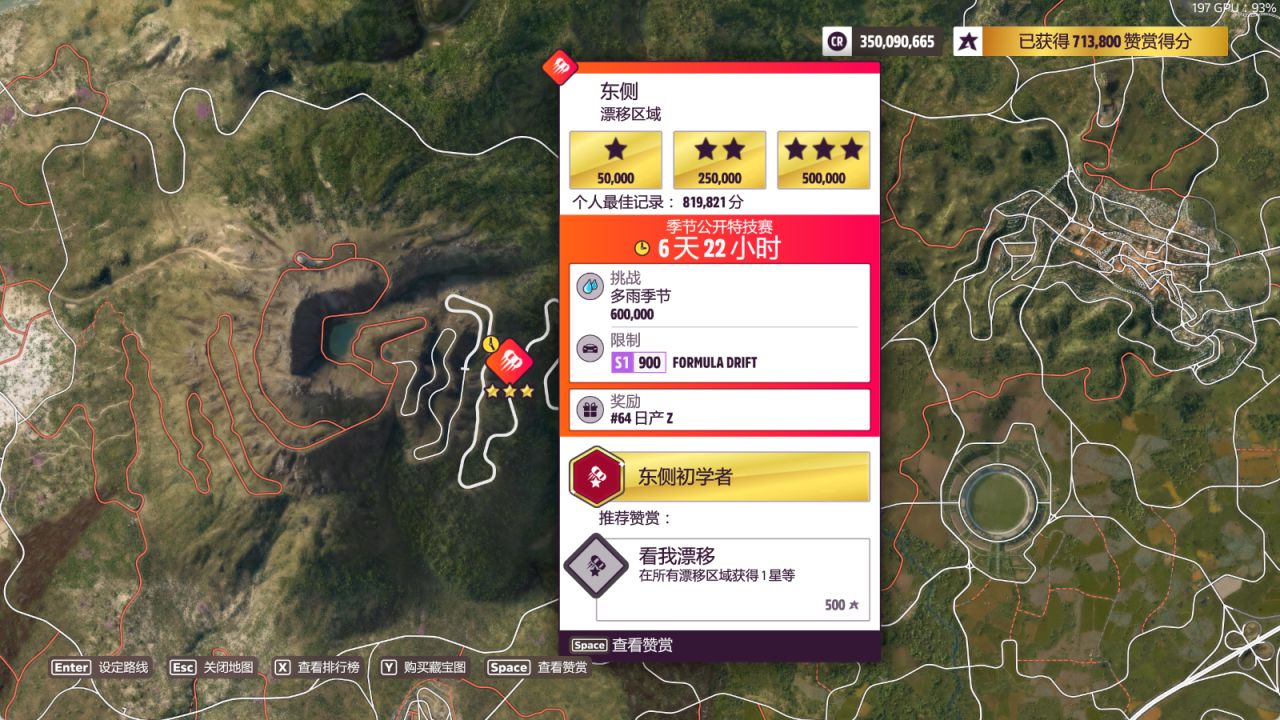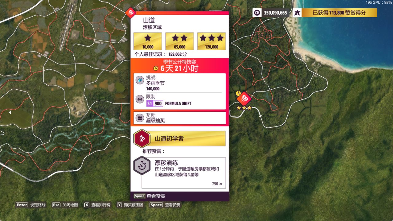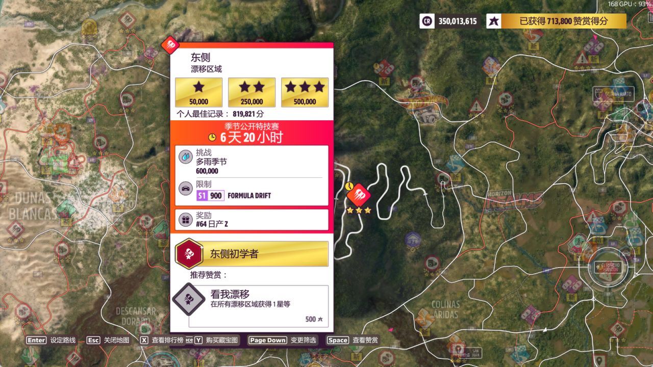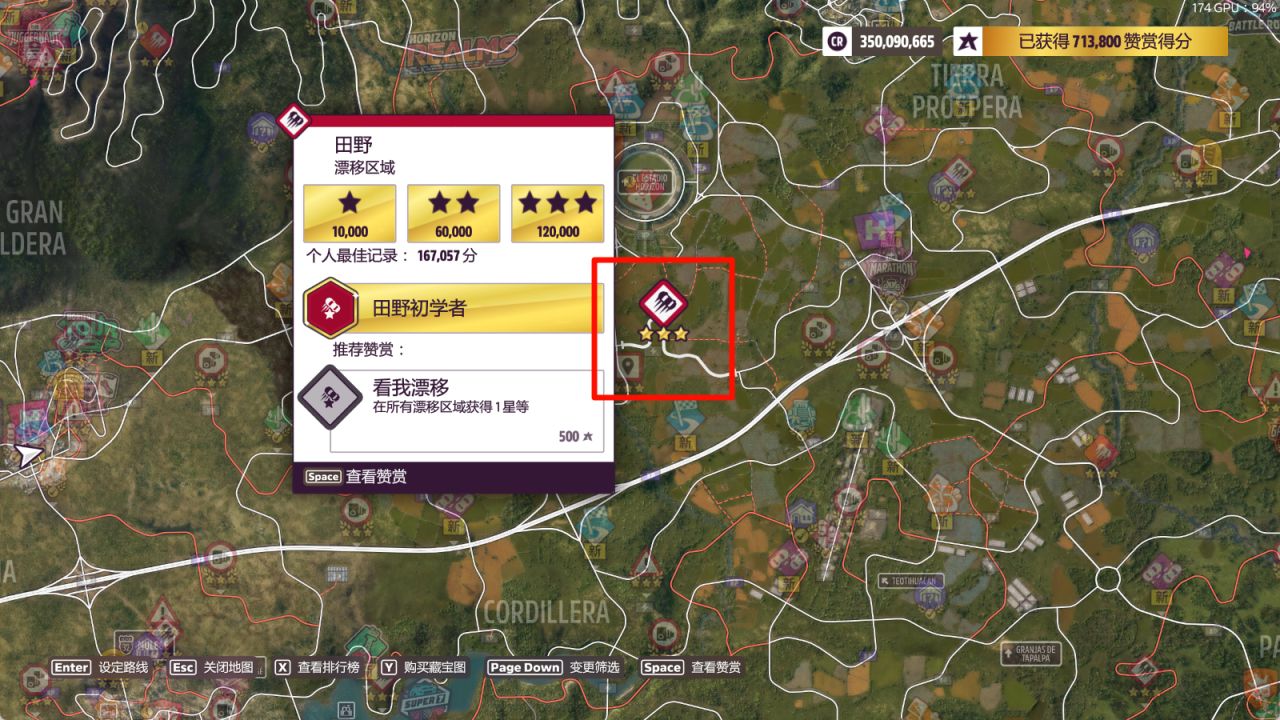 漂移区域:山道,完成奖励为超级抽奖(完成条件:14万分)