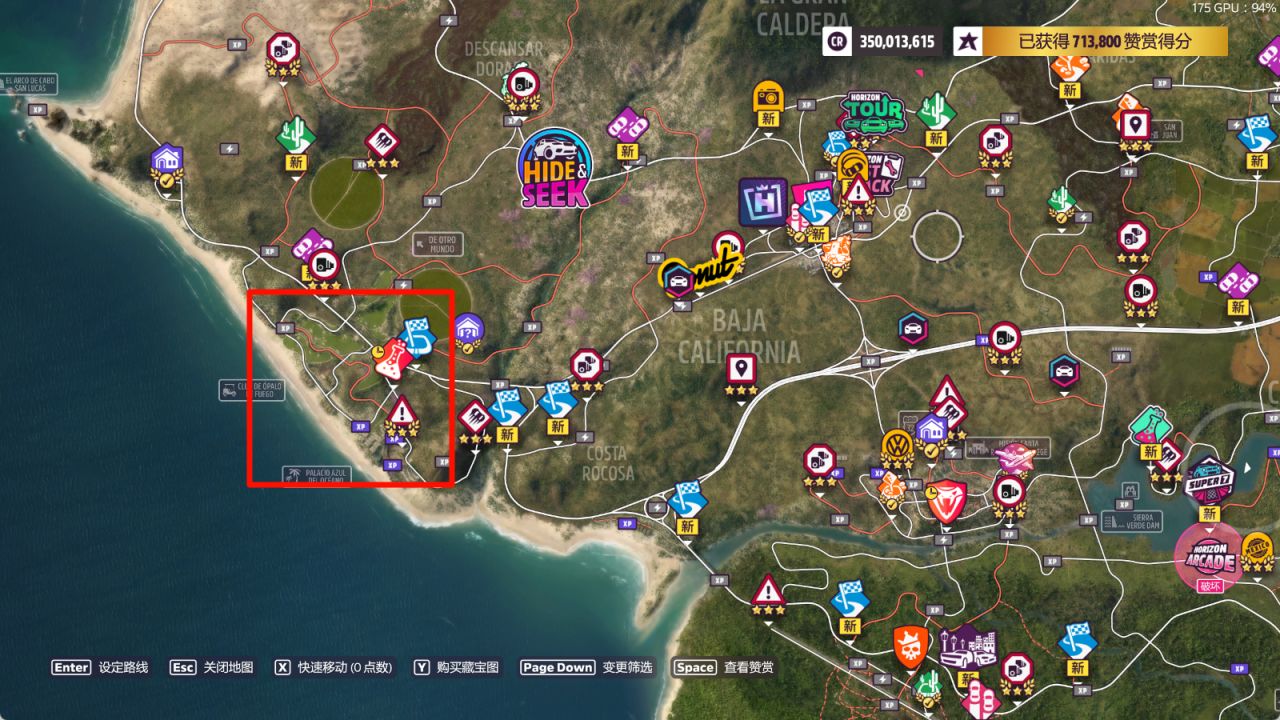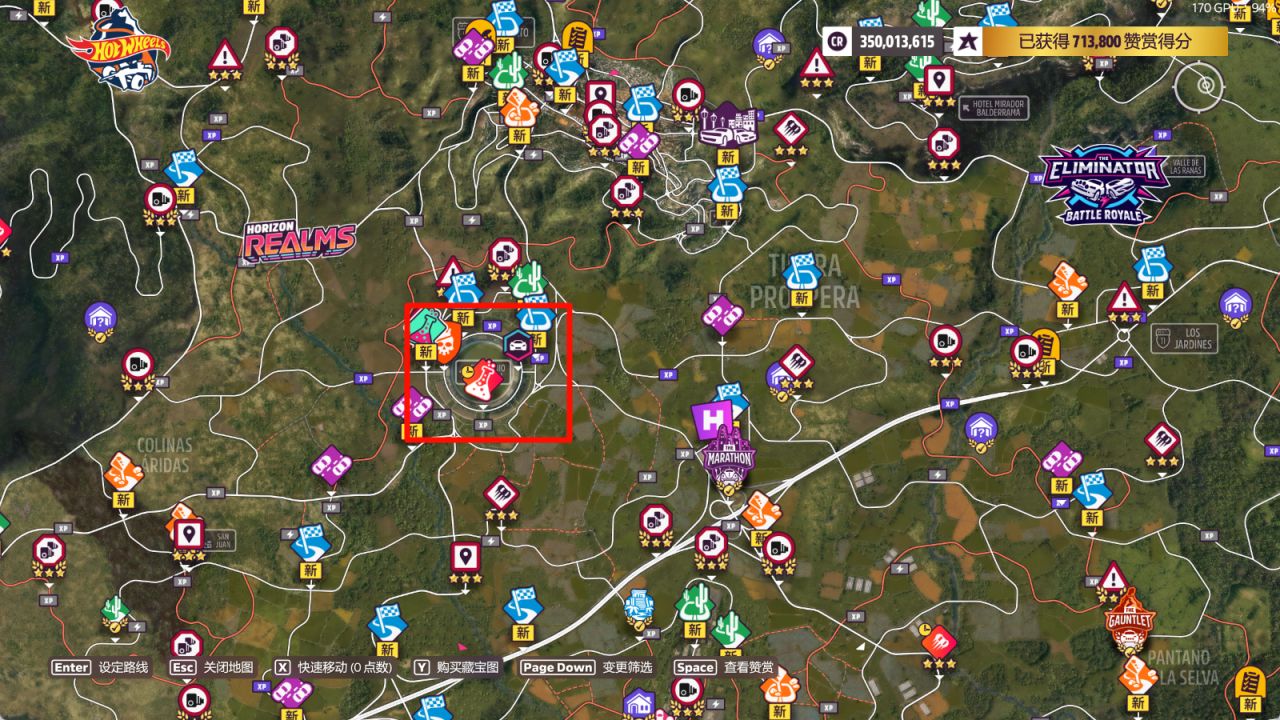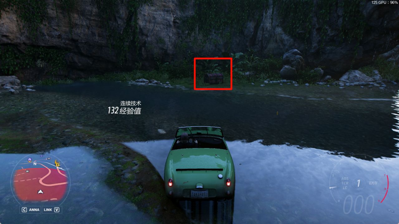 驾驶1958款AUSTIN-HEALEY SPRITE MKI完成5次空中飞车技术,即可触发宝箱大致范围,位置如图,完成奖励300马拉松点数