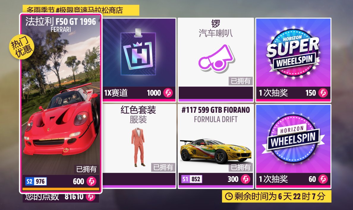 地平线后台通行证,目前后台车辆较少,五代和四代一样采取投票返场车辆的方式,通行证换不换大家自行抉择;红色套装、锣汽车喇叭没有的建议大家兑换。每周更新的衣服和喇叭等没有的建议大家无脑兑换!