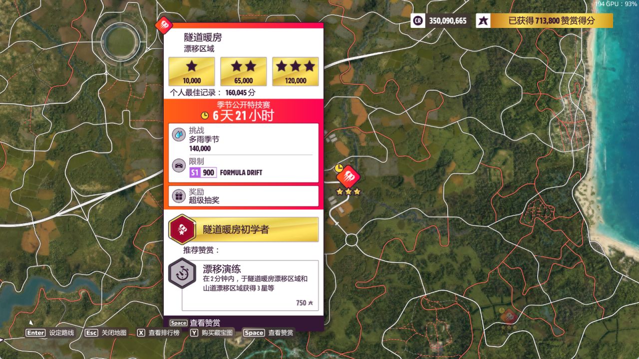 漂移区域:隧道暖房,完成奖励为超级抽奖(完成条件:14万分)