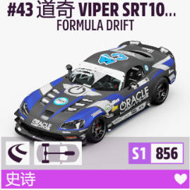 推荐车辆:2006款FORMULA DRIFT #43 道奇 VIPER SRT10(车展,左右扭扭,注意别出界)