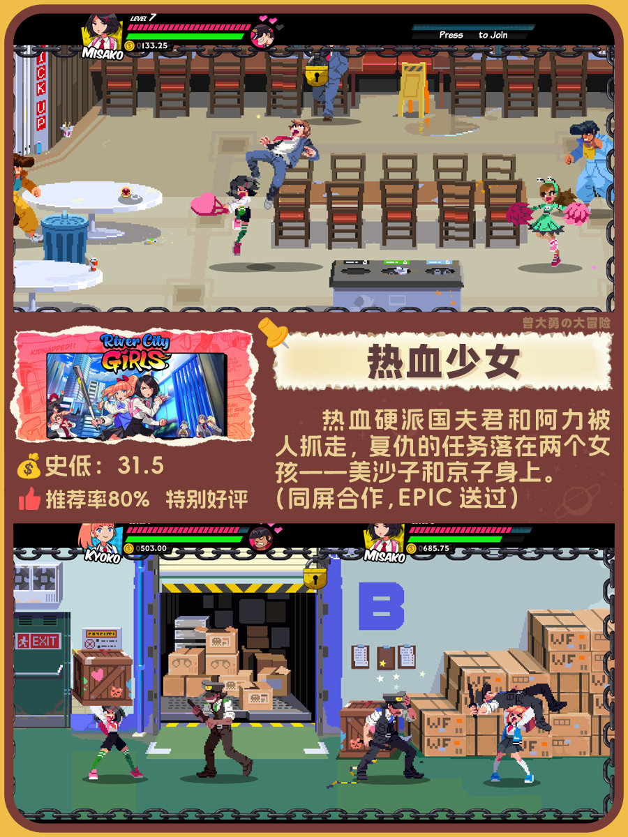 整理了十二款steam上特別好評的清版動作遊戲,有很多是可以同屏合作的。文章底下附有遊戲詞條,有感興趣的遊戲可以看一下其他玩家的評價,再考慮是否入手。