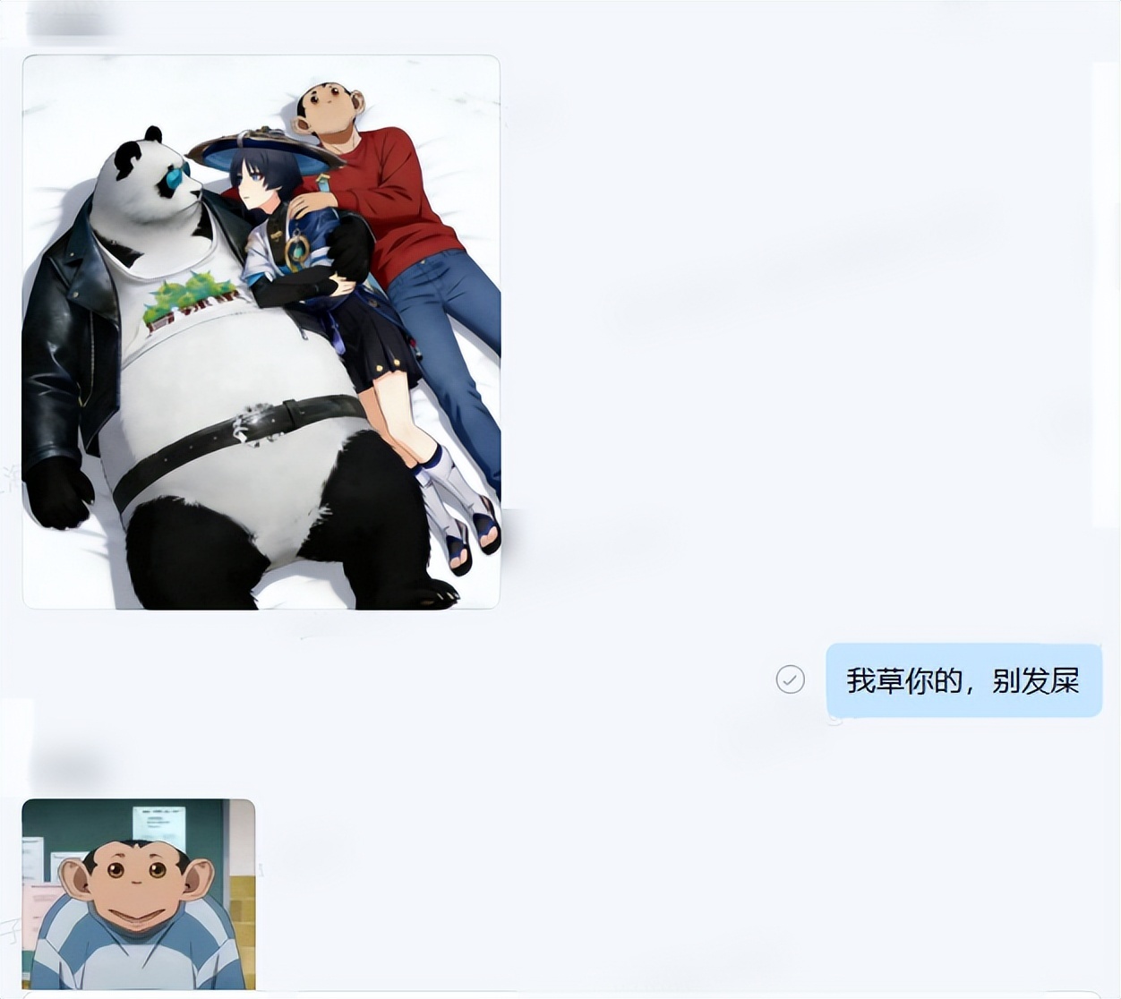 同时,异形奶龙、你已急哭外星人等各路牛鬼蛇神,在“互联网搬屎链”的地位也被杂交猩猩查理取代,在各大互联网群聊中成为梗图霸王——真的,这两周来,起码有十多个不同的好友给我小窗发杂交猩猩的鬼图,甚至有子鲤老师、子鲤老师和子鲤老师这样的烂梗帝王,在工作群里狂发猴图……也是托了他的福,我才捏着鼻子去品了这部神剧,然后才有了这个选题,真是谢谢他了。