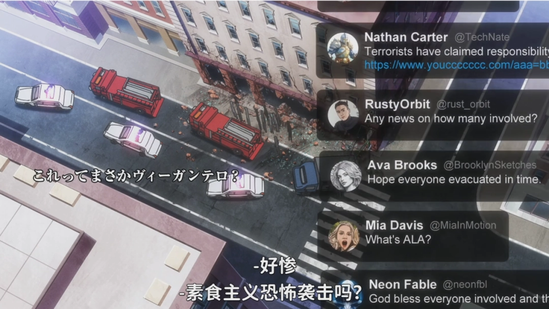 但实际上,这句话并不是单独成立的,而是查理用来反驳另一人观点,而说出的所谓“讽刺”——还记得前面那个把查理从实验室救出来的极端组织吗?几乎是和查理魔丸降世的同一时间,他们也正式复出开始了搞事,嚷嚷着动物平权、素食主义之类的口号,四处搞爆炸恐袭,还炸死了无辜的孩子。