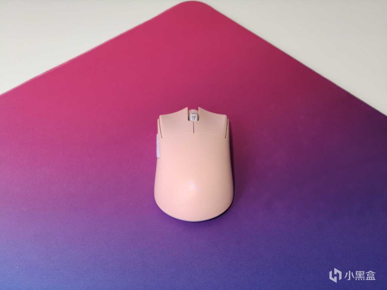 底胶方面,采用了特调的紫色天然橡胶底胶,防滑性能拉满,用力甩动鼠标也不会移位,甚至还自带一丝细节骚气,和表面的渐变配色很搭配。