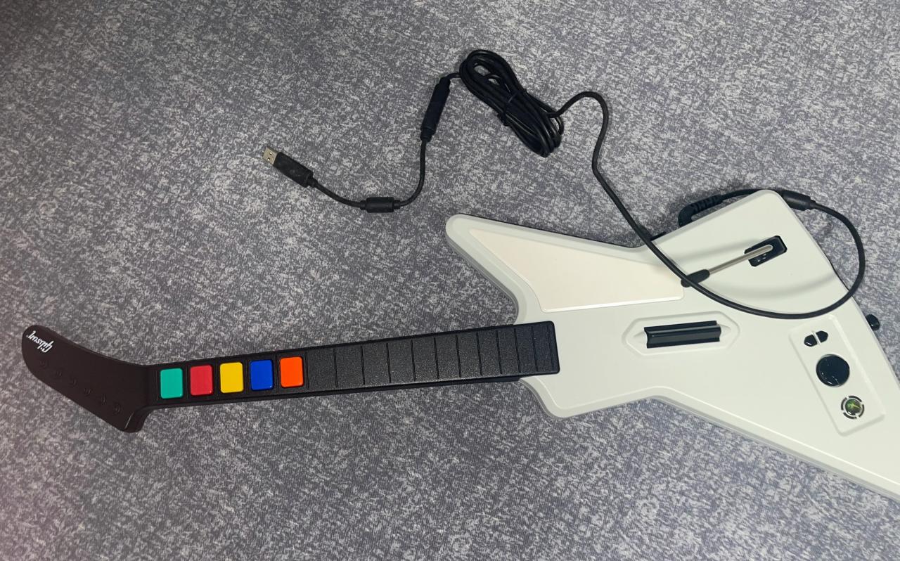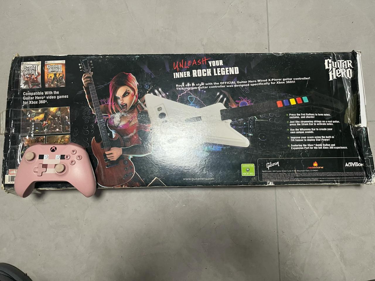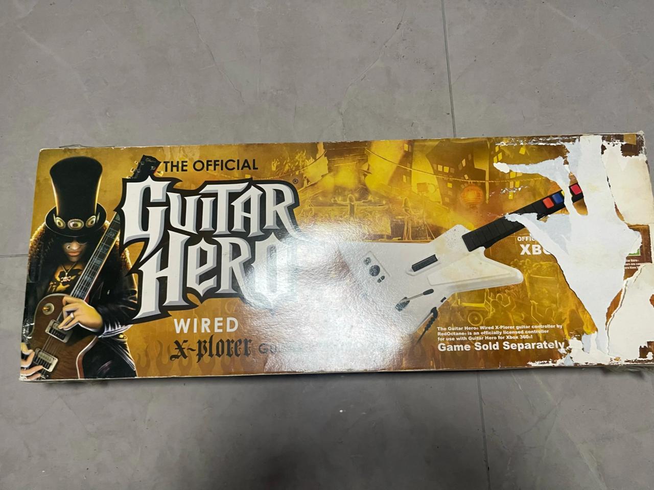 后来查询发现这是一款2017年发售的吉他手柄,专门为吉他英雄这个游戏做的。没想到都已经10年了居然还有全新的东西。