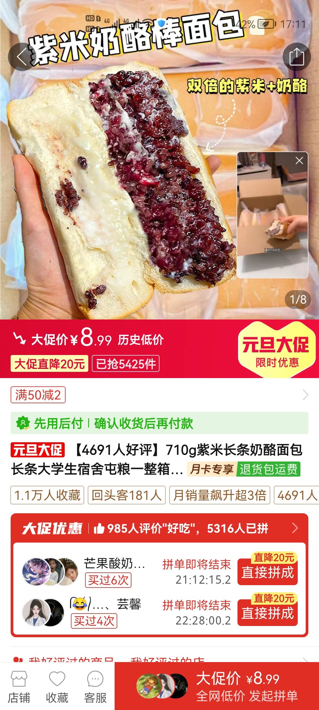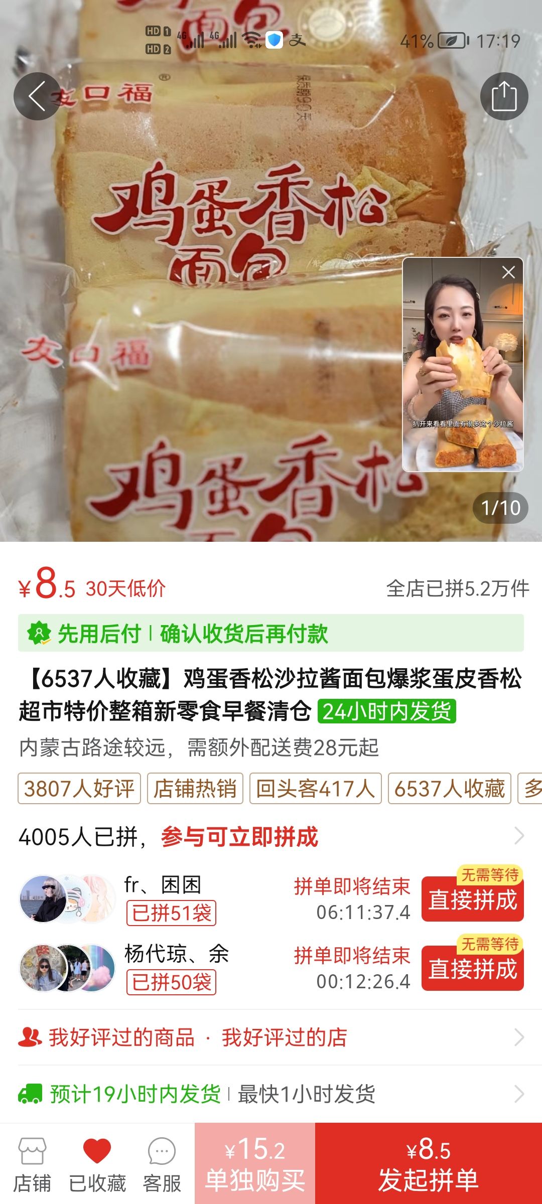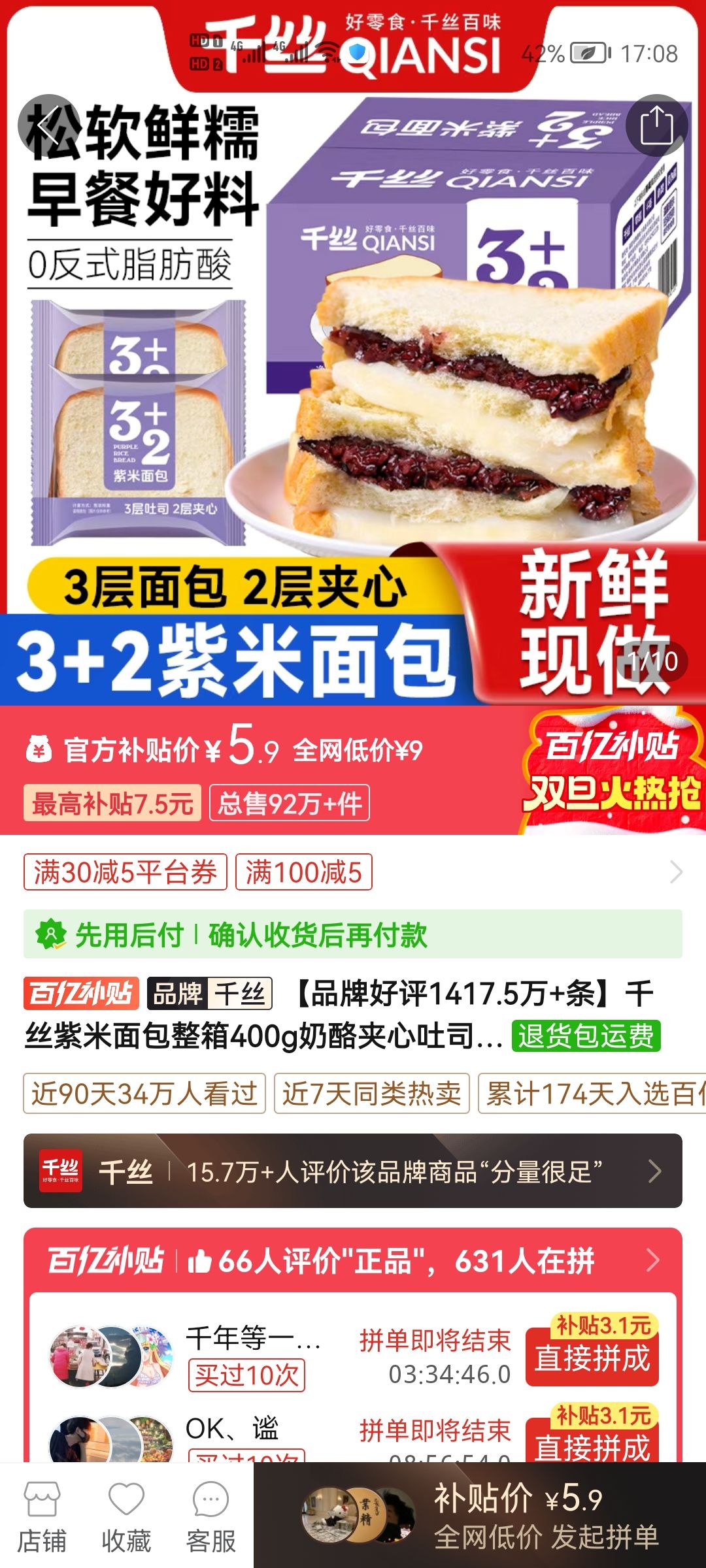 我買過很多牌子的肉鬆麪包,雖然看起來差不多,但還是有不小的區別。比如餡料,大小甚至買回來就長毛這個牌子目前沒翻車。量大,新鮮,味道香,關鍵是便宜。如果想增加體驗建議直接買桃李的,那個品質更佳,當然也會貴一點。口感鬆軟,味道鹹香,適合所有人羣,非常棒的早餐,推薦推薦!