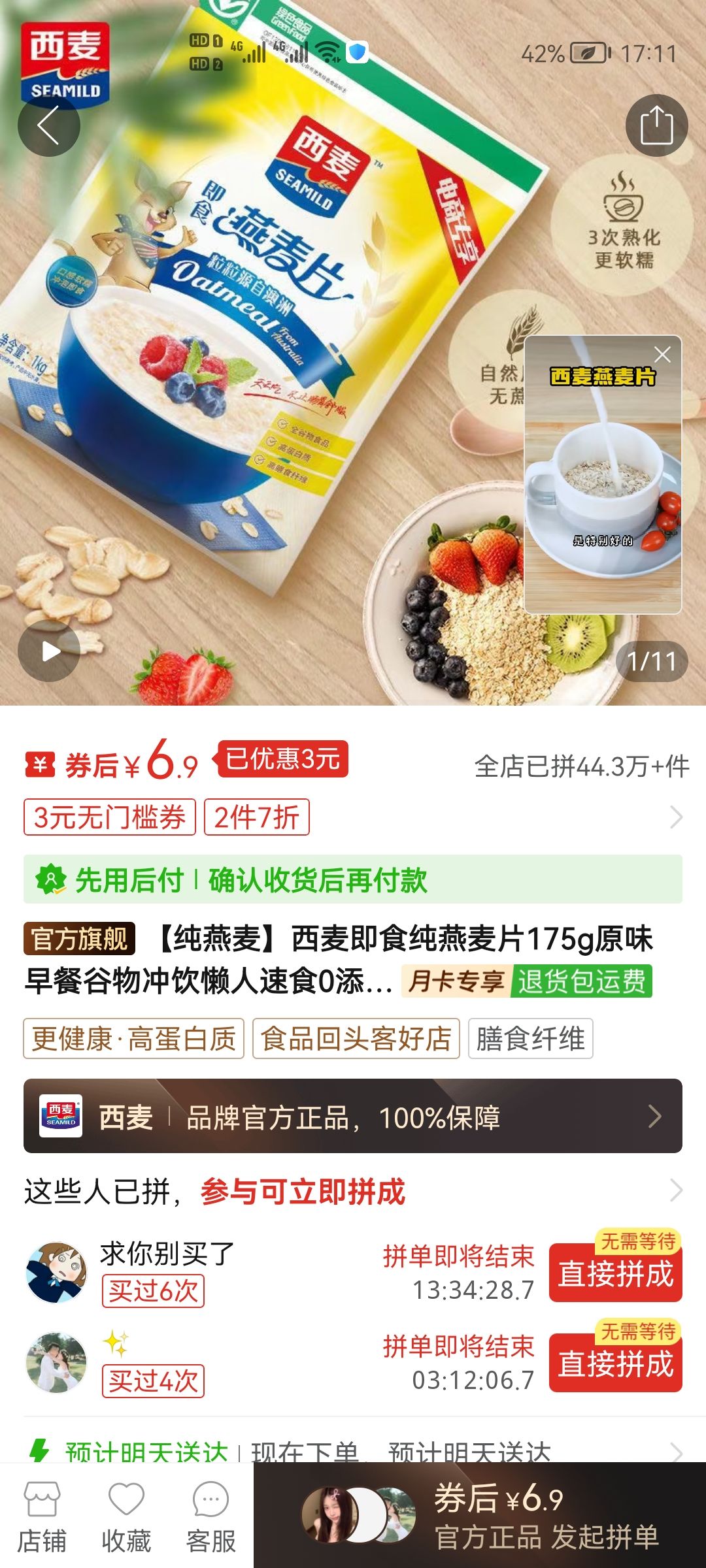 大量的膳食纖維,中量的碳水和適量的脂肪,軟爛易消化。完美的餐食飲品。西麥麥片的品質是值得信賴的,不論從沖泡難度,口感還有用料都是很好的。價格控制在5元/斤就是好價。建議衝的時候少放點水,至多1份麥片3份水,水再多則影響口感。同時要蓋蓋燜一會,讓麥片徹底軟化。