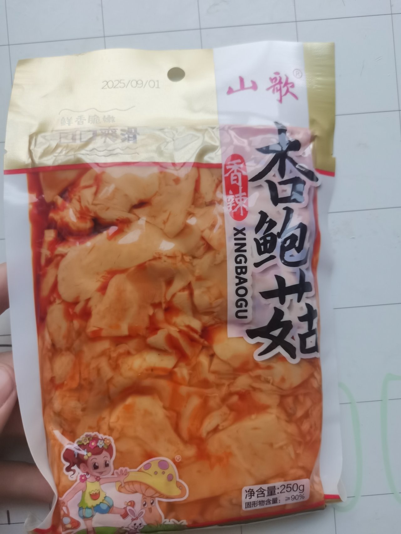 他家有杏鮑菇和金針菇兩種,一個味道,但是口感不同。適合夾在餅裏或者和麪包一起喫。屬於香辣,味道很不錯。缺點是袋子太大一次喫不完。因爲不辣所以推薦給所有人,特別是微微辣人。辣度🧡💔🤍🤍🤍