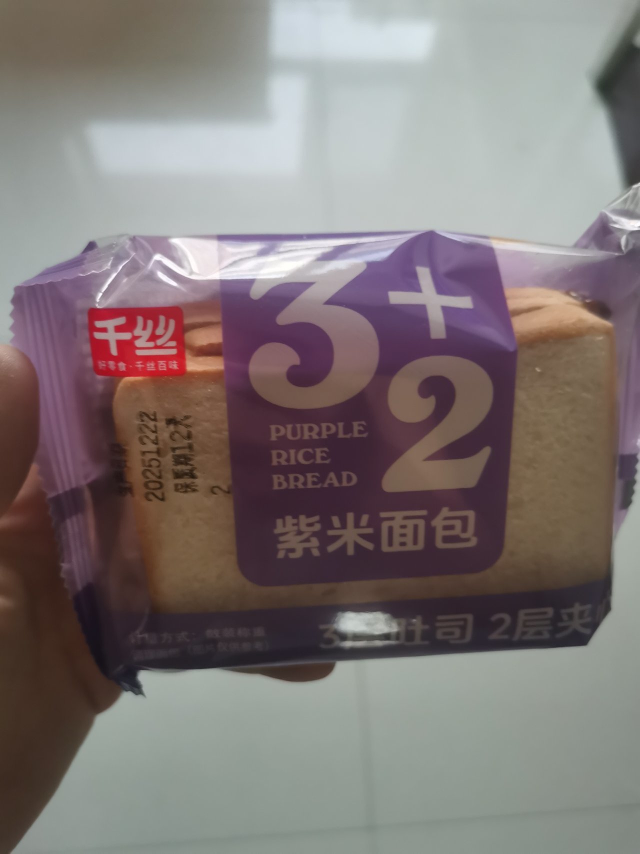 上一個麪包的方形版本。千絲牌子還不錯,紫米餡料明顯多了不少,但是奶油依然摳門。。因爲紫米的增加,分量也有所提升,適合當早餐。飽腹感很強。建議冷藏儲存。注意現在紫米夾心麪包有兩種,一種是能看見米粒的,另一種是一坨紫色漿糊的。推薦買前者,買之前去評論區多看看。