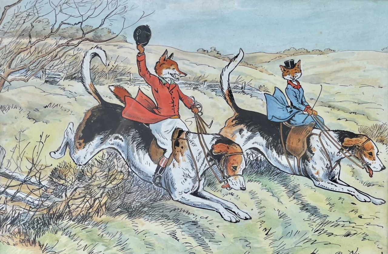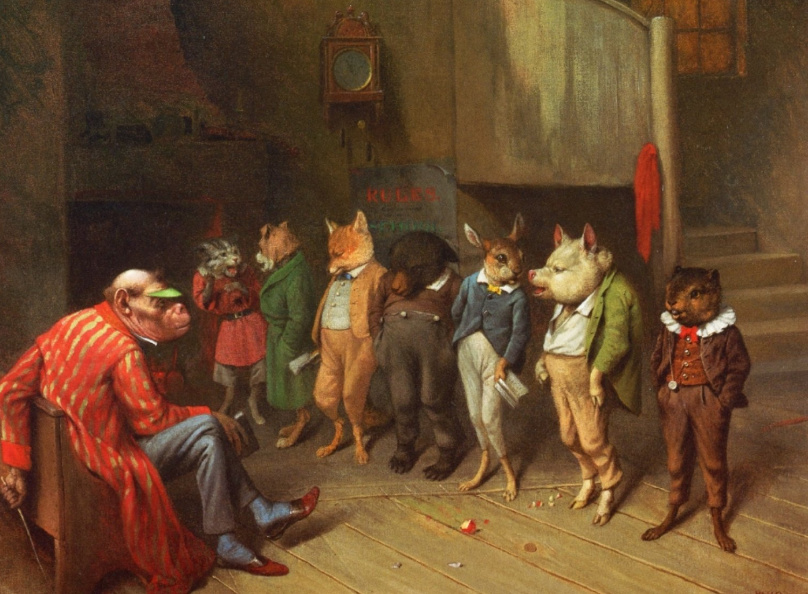 除此之外,由于教育意识的进步,童书成为了拟人动物画作的重要阵地,童书插画家哈利·B·尼尔森(Harry B Neilson)的作品同样很受我们的喜爱。不限于国籍的话,美国画家威廉·霍尔布鲁克·比尔德(William Holbrook Beard)同样给了我们很多灵感。