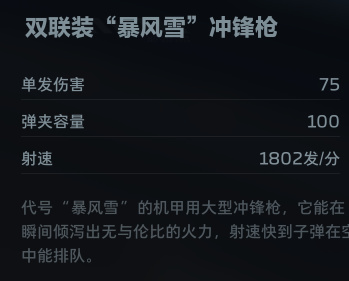 这玩意属于谁都能用,啥武器不换就能过沙虫。啄木鸟和初始武器的DPS是1500,暴风雪冲锋枪是2252。但不能看好不看差,暴风雪的弹匣只有100,这个疯狂的射速会在3秒就把子弹射完,被迫频繁换弹。