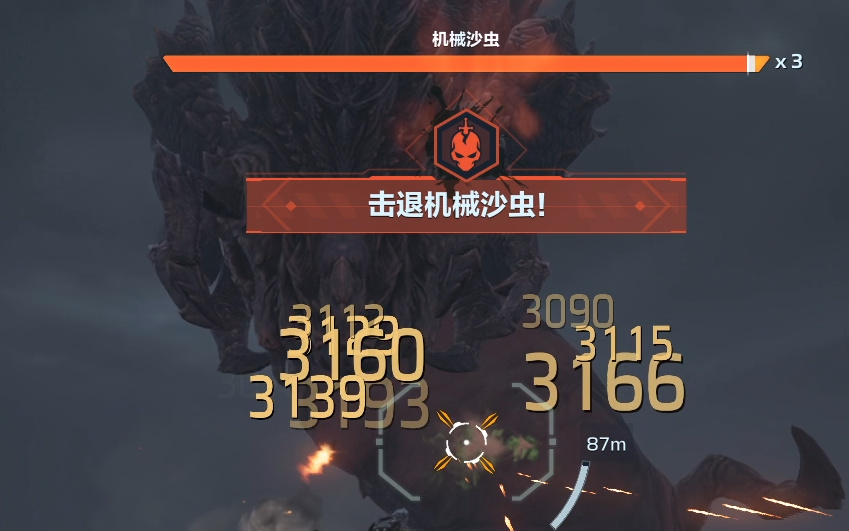 这玩意你打排位堵门可能还行,时空追猎或许也还行,但面对沙虫距离一远下坠就很严重,因此必须换成机关炮作战。