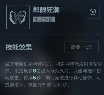 大招我用解限狂潮,根据描述我也看不出两个大招区别。但另外一个大招是扔导弹,感觉PVE里有几率被队友挡住。