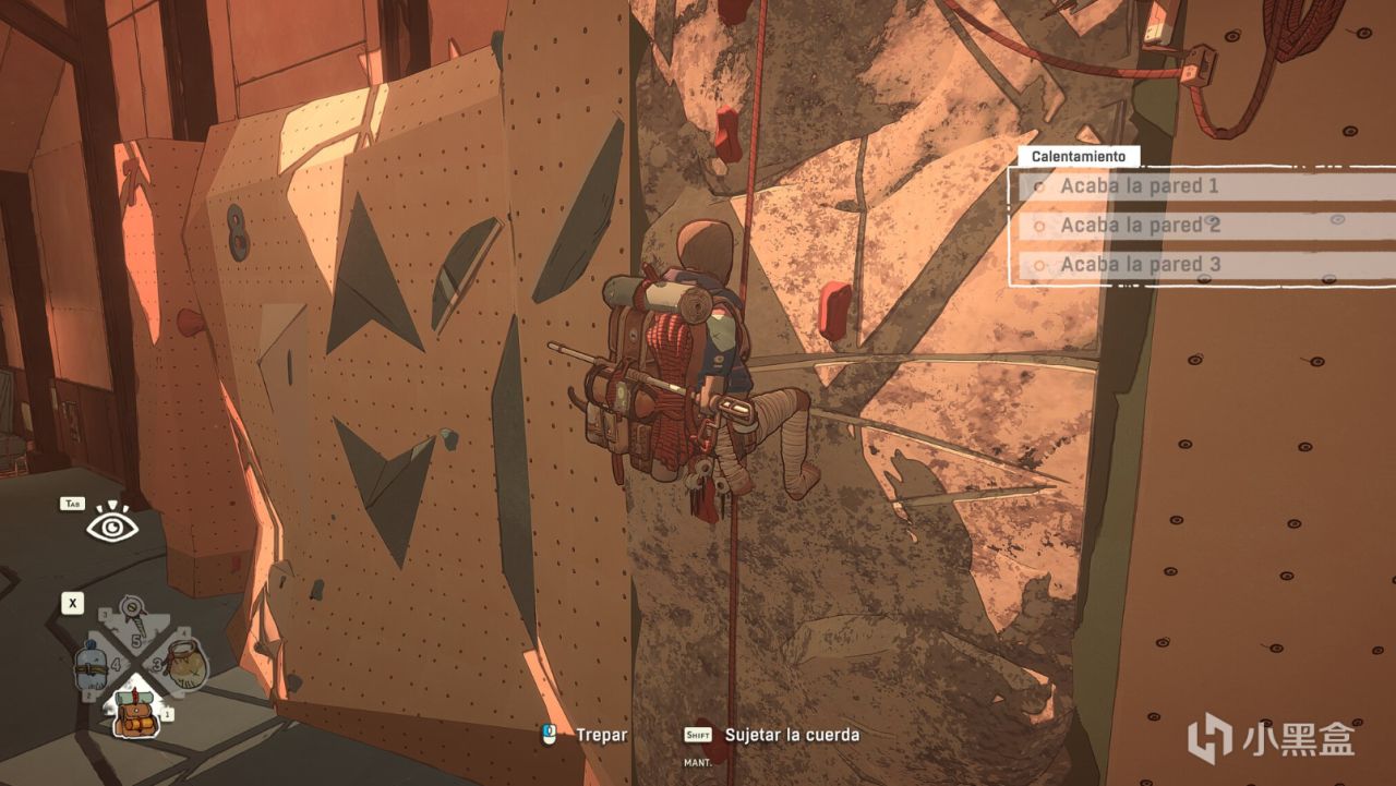 正如游戏初期所展现的,Aava是一位经验丰富的登山者和生存专家,我的操作必须配得上她的实力。Aava拥有大量的专业工具和知识,这让攀登变得容易一些,比如说可以使用镁粉来增加摩擦力。在营地存档点可以搭帐篷休息,修复岩钉或制作新岩钉,将可回收物喂给机器人助手,吃饭和睡觉以恢复HP。