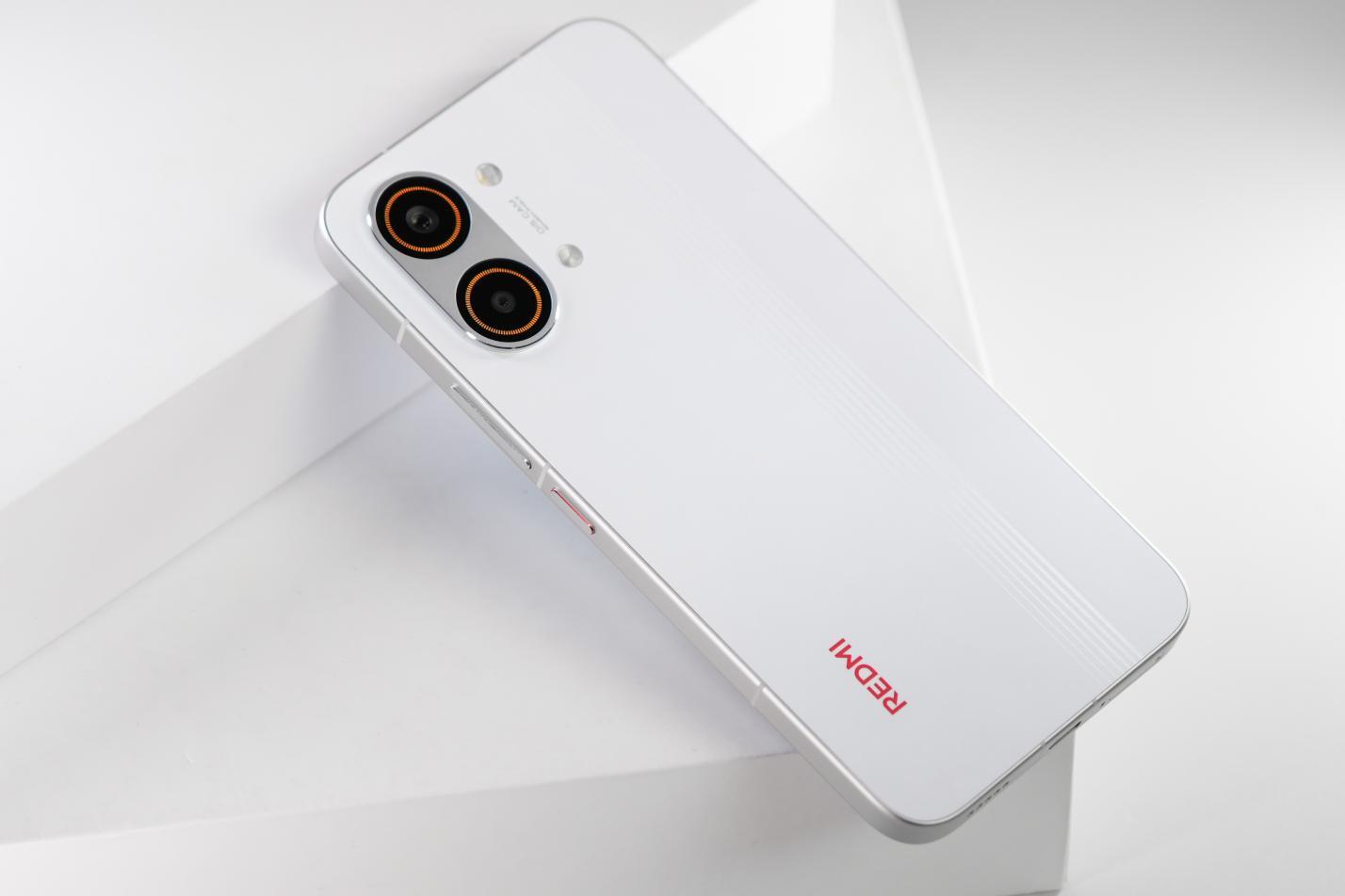 红米REDMI Turbo 5 Max的外观延续了Turbo 4系列上的至简美学设计,减少了冗余元素,铝合金的胶囊相机模组只有微微凸起,分布着主摄和超广角的双摄组合,上代的条形闪光灯则改为了圆型,再往右则是银色条纹装饰。
