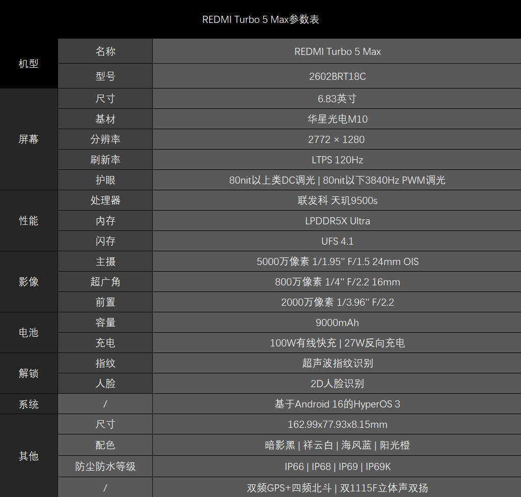 竞争这么激烈的市场,自然也少不了红米,赶在1月末尾,红米REDMI Turbo 5 Max正式发布。