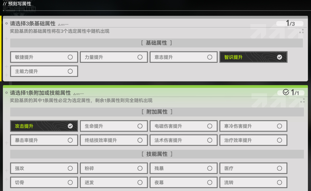 武器和基质都有三类词条 分为主属性、副属性、技能