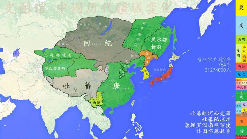 至德元年(公元756年),吐蕃趁亂攻佔唐朝隴右道東部的威戎、神威等軍鎮,開始蠶食河西邊境。一直到公元765年安史之亂結束,吐蕃一直在頻繁趁虛襲擾河西甚至關內,逼近長安,侵佔了唐大片領地,所到之地,迫使唐民着胡服說胡語,還要棄耕從牧,昔日唐民皆心向中原故土——