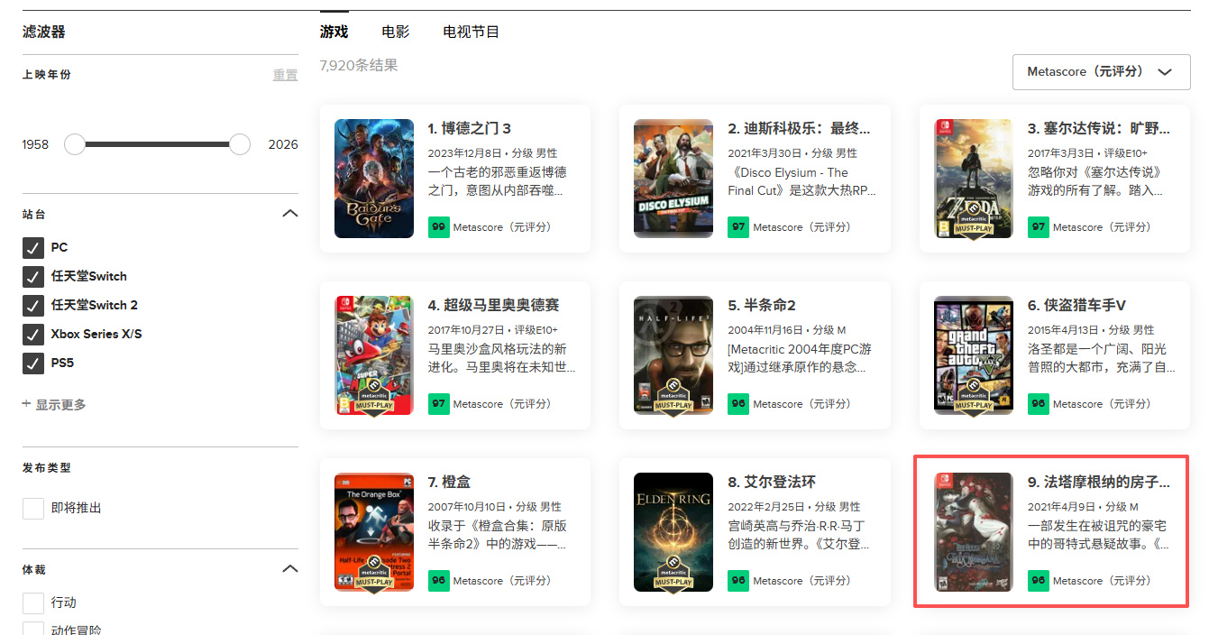 之前在M站上查现有平台最高分游戏,前十名里有一个从来没见过的名字——海市蜃楼之馆。评分高达96分,超过王国之泪等一众神作。正好家庭组里也有这个游戏,高低得尝尝咸淡。