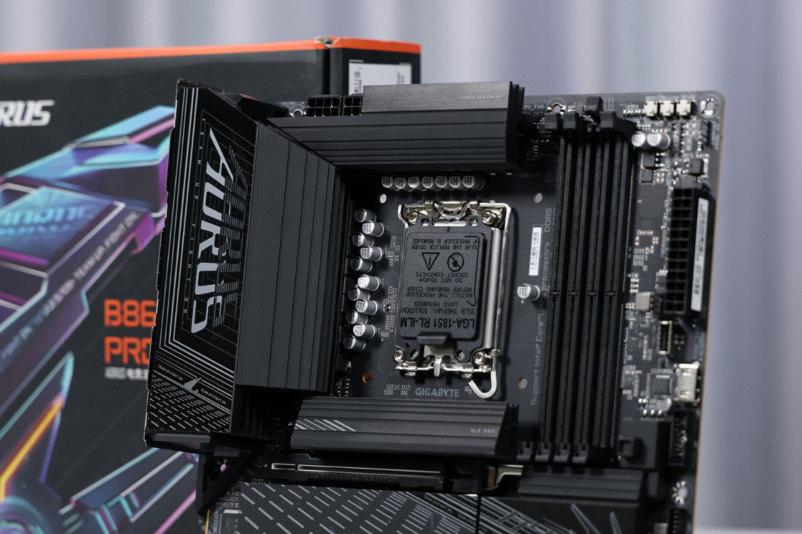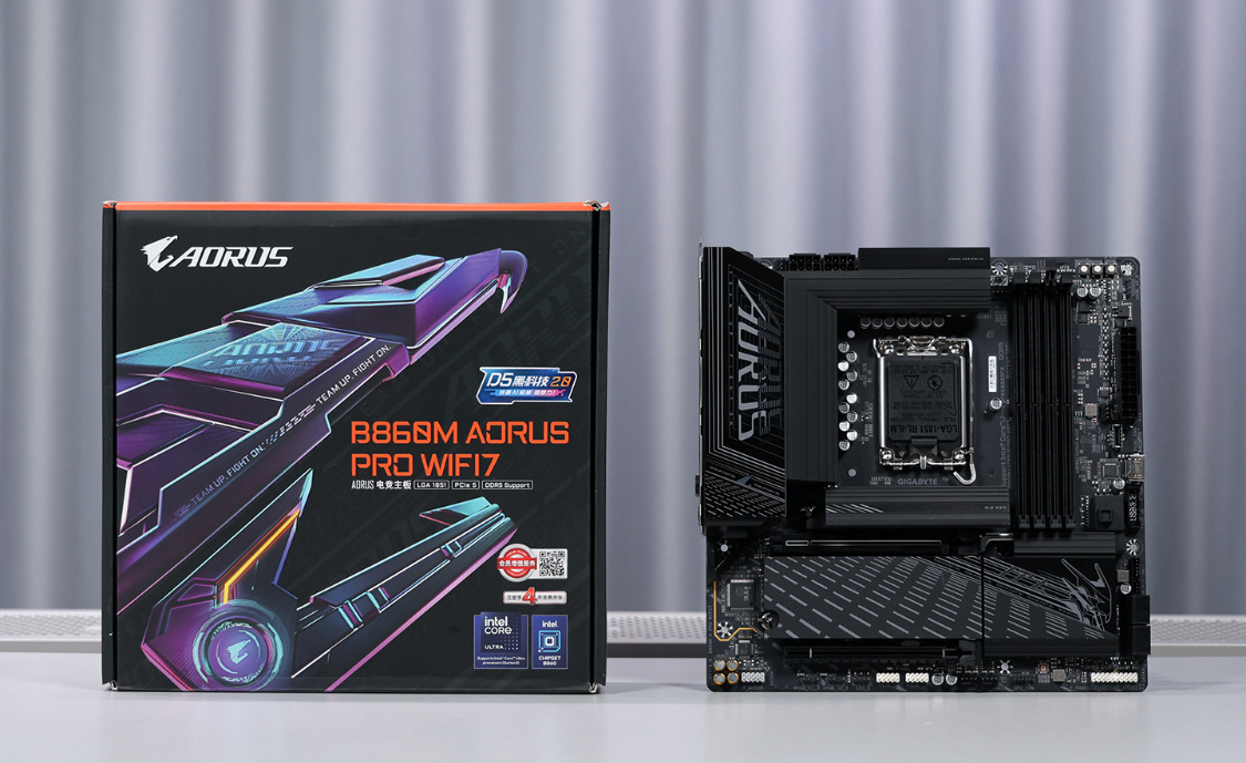 技嘉B860M AORUS PRO WIFI7电竞雕主板。M-ATX规格,11+1+2相智能供电,双8Pin加粗实心针脚的外接供电搭配上有2oz铜板加持的8层高规格PCB,也可以保证给CPU提供稳定强劲的电能供应。