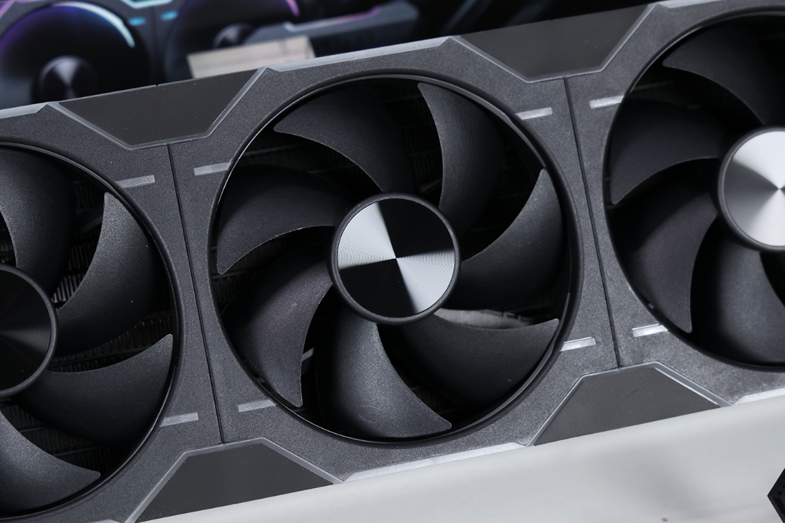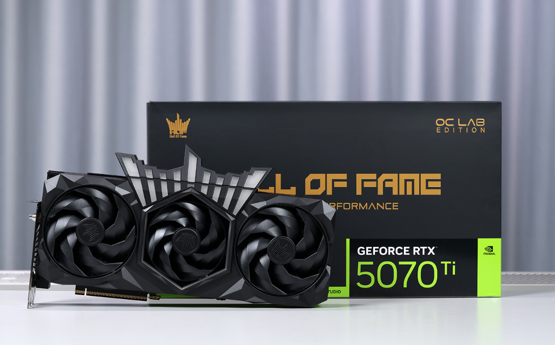 影驰RTX 5070 Ti HOF OC LAB黑魂X显卡。标志性的可拆式磁吸皇冠灯件支持ARGB神光同步,信仰与可玩性都拉满。全黑配色的显卡本体,钻石切割造型散热外壳,质感优秀。3颗黑色无光霜环风扇设计,同时中间风扇边缘及顶部灯带,搭配同样搭载ARGB灯效的皇冠设计,信仰拉满。