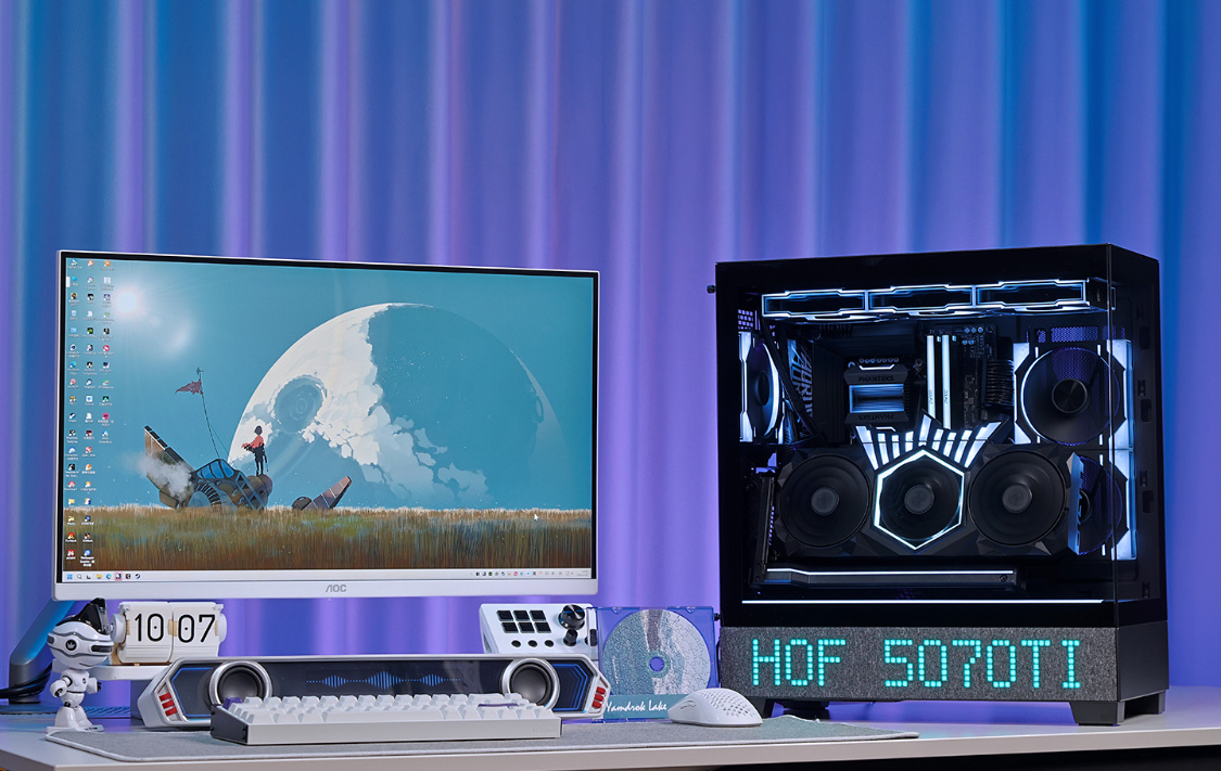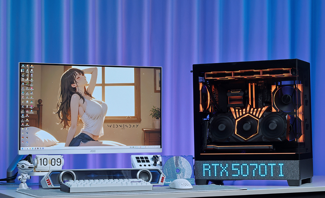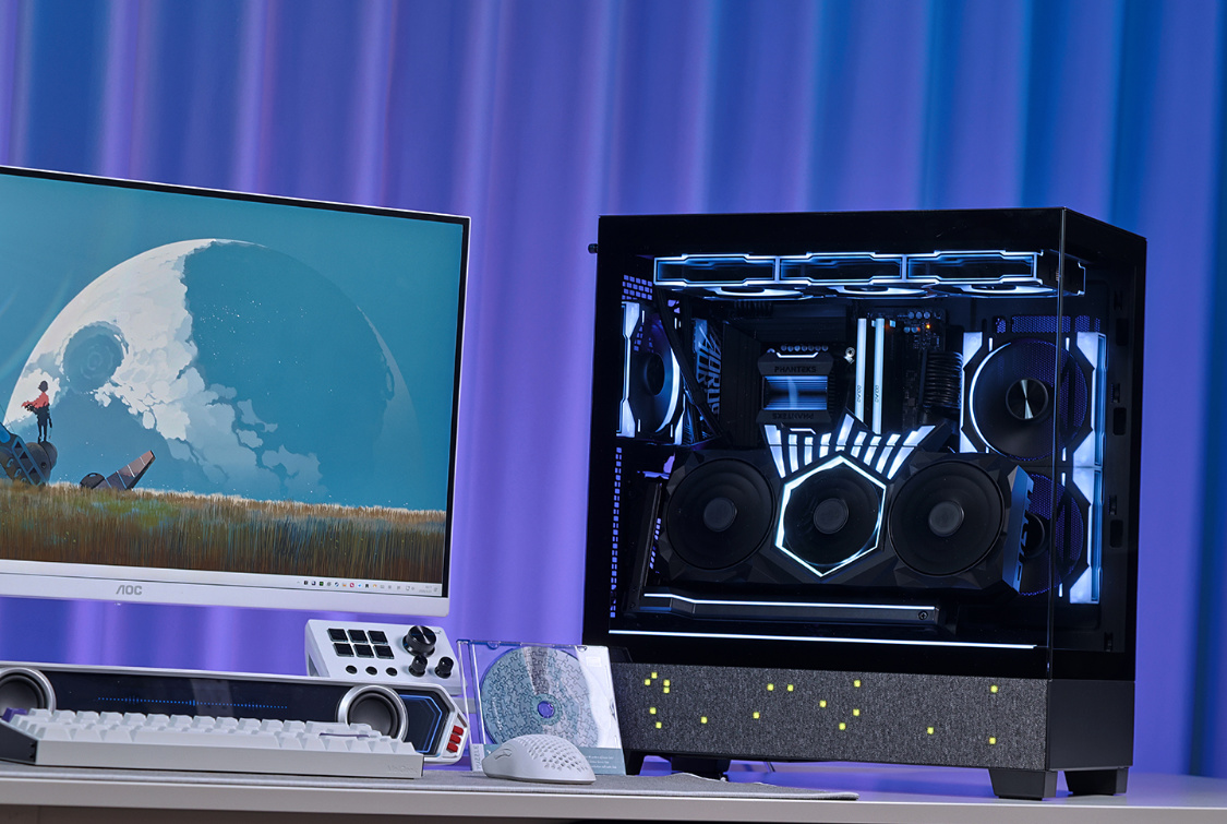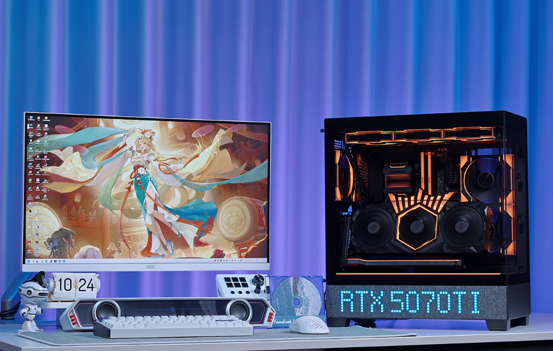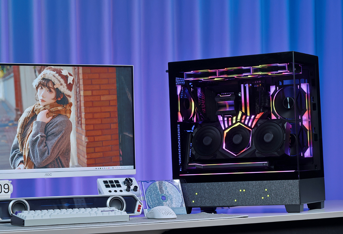 竖装的黑色名人堂显卡搭配追风者XT523海景房机箱,整机效果应该说相当出片,质感表现拉满。配置方面,245K+5070Ti的组合,网游性能表现或许不及AMD 9000 平台那般惊艳,但游戏+生产力的综合性能表现,依旧可圈可点。至于狂飙的电脑配件行情下,到底要不要装机,咱依旧还是那句,看需求,同样也看自己钱包是否支持。