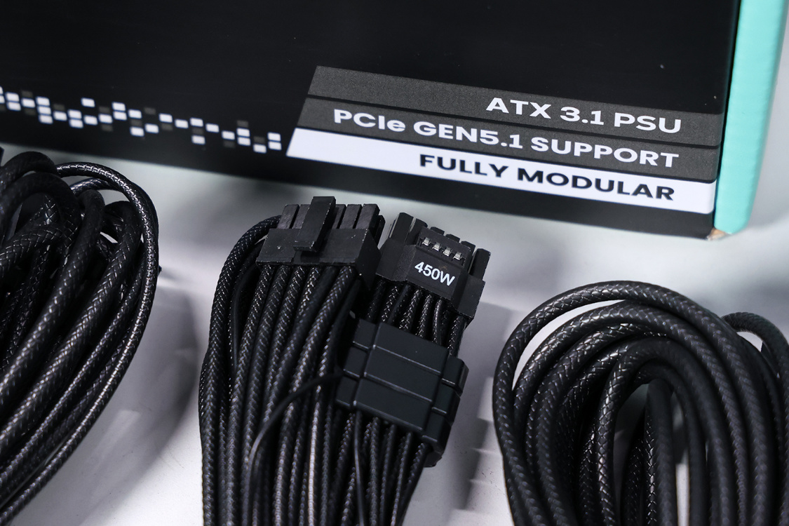 电源三围:140*150*86mm,全日系电容配置,搭配上主动式APFC+半桥LLC谐振电路+同步整流技术+DC to DC电源架构,能源转化效率可达91%,远超80Plus的金牌认证标准。电源基于Intel的ATX 3.0电源方案设计,符合PCIe 5.1电源标准,最高可承载2倍整机瞬时功耗和3倍显卡瞬时峰值功耗,电源提供了原生支持12V-2X6电源的供电接口,搭配上采用高规格线芯的12V-2X6显卡电源线,最高可提供单线高达450W的供电能力。