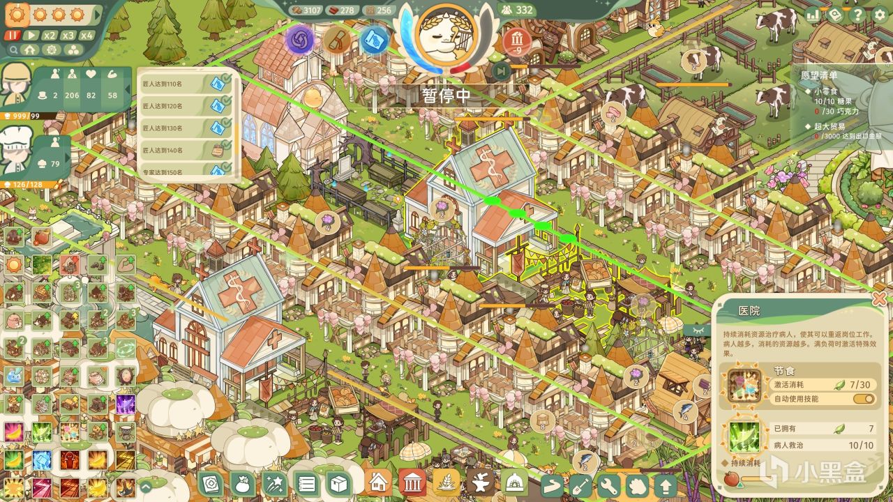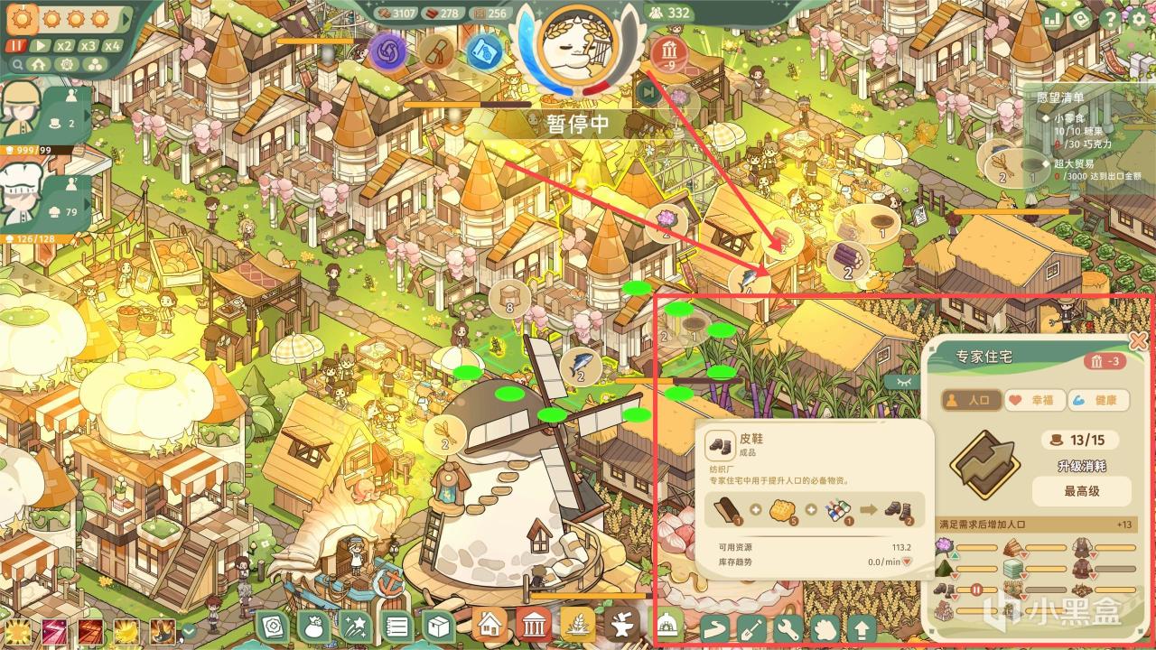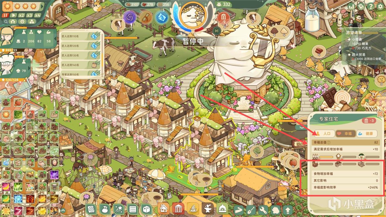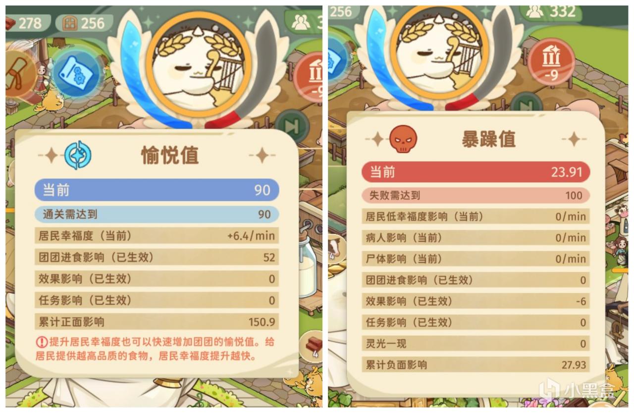 而後面的難度,僅僅是依靠完成進食要求來增加愉悅值的話,會壓力比較大,同時我們需要提高居民的幸福度,產生每分鐘都有愉悅值自增長的效果!