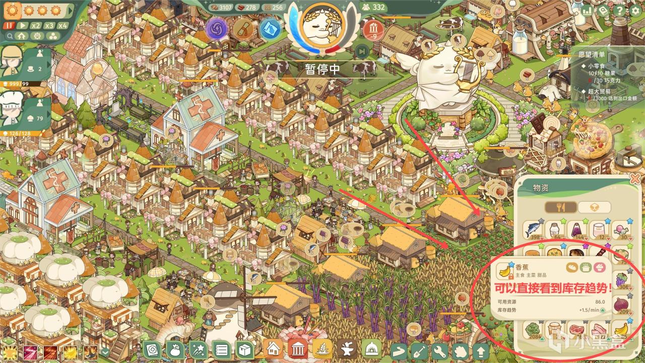 最後跟大家說一下供需關係,實際上本作的供需關係並沒有《紀元》系列複雜,不需要隔着島嶼去傳輸物資,我們可以直接通過倉庫,去看存儲趨勢,水多了加面,面多了加水即可!
