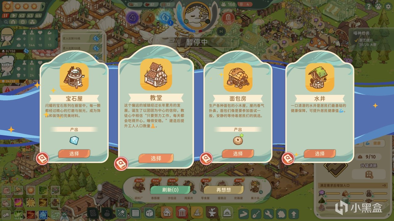 同時值得一提的是,遊戲中的建築藍圖,都和人口以及團團的愉悅值綁定,給到的藍圖、菜譜、靈光一閃也是隨機的,這也是爲何說《南國盛宴》具備輕度肉鴿性質的依據!