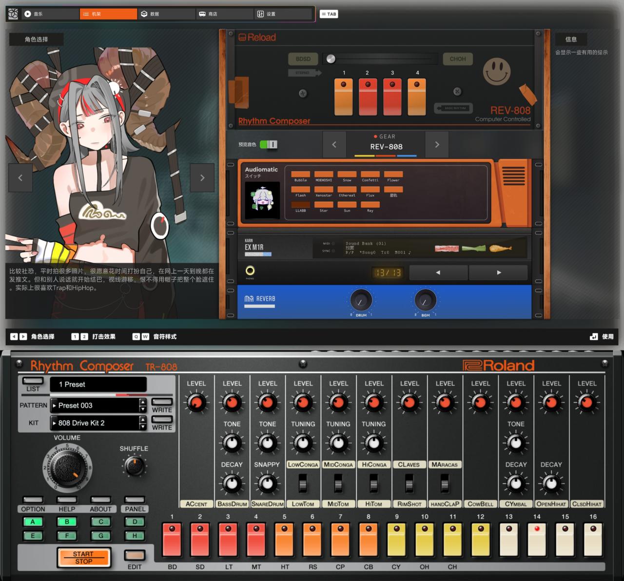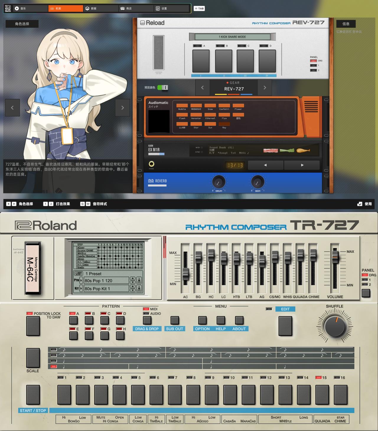 當然,除了LLABB這一製作人化身以外,其他機娘都有鼓機原型,比如727對應TR-727,808對於TR-808,909對應TR-09,後續還會陸續推出更多機娘,或許有朝一日還能看見鼓機全明星PK!